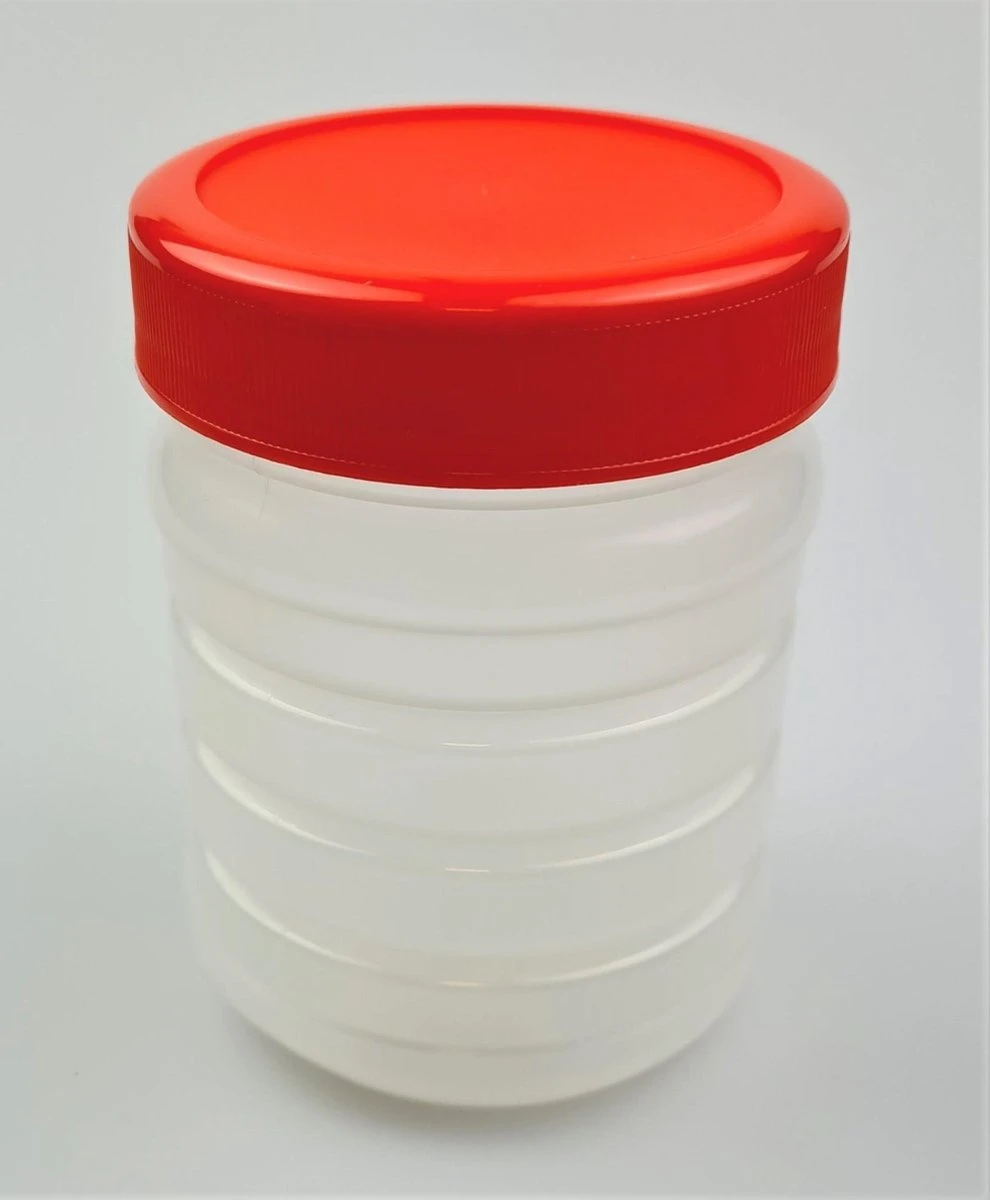 Dit ronde plastic meerlagige bakje heeft een inhoud van 500ml (ø 84 mm en hoogte 109 mm). De plastic bakjes worden standaard geleverd met bijpassend deksel (rode draaideksel).