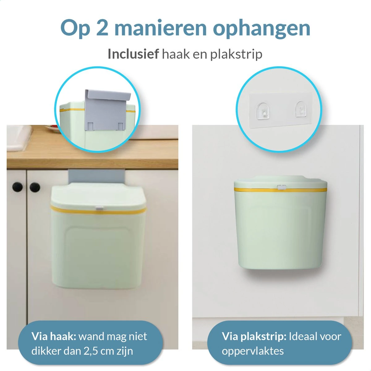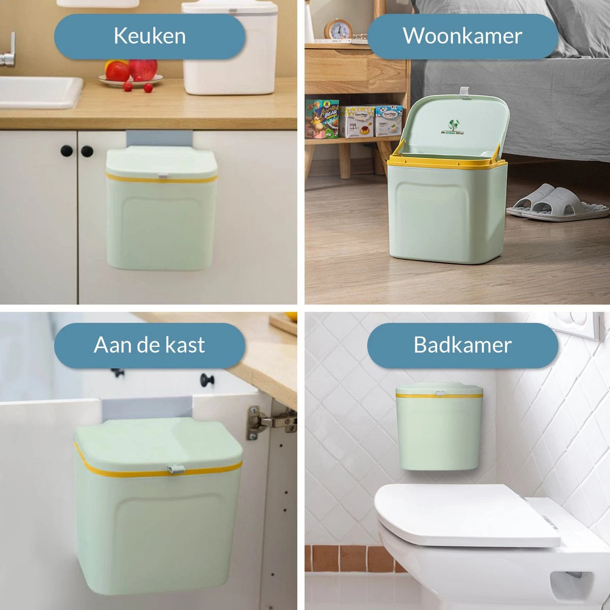 Ben je het zat om voorover te buigen om het afval te legen tijdens het koken of Maak je je nog steeds zorgen over de fruitvliegjes en de geur van afval? Onze hangende prullenbak met deksel van Mr. Green Mind kan u helpen om dit probleem perfect op te lossen.