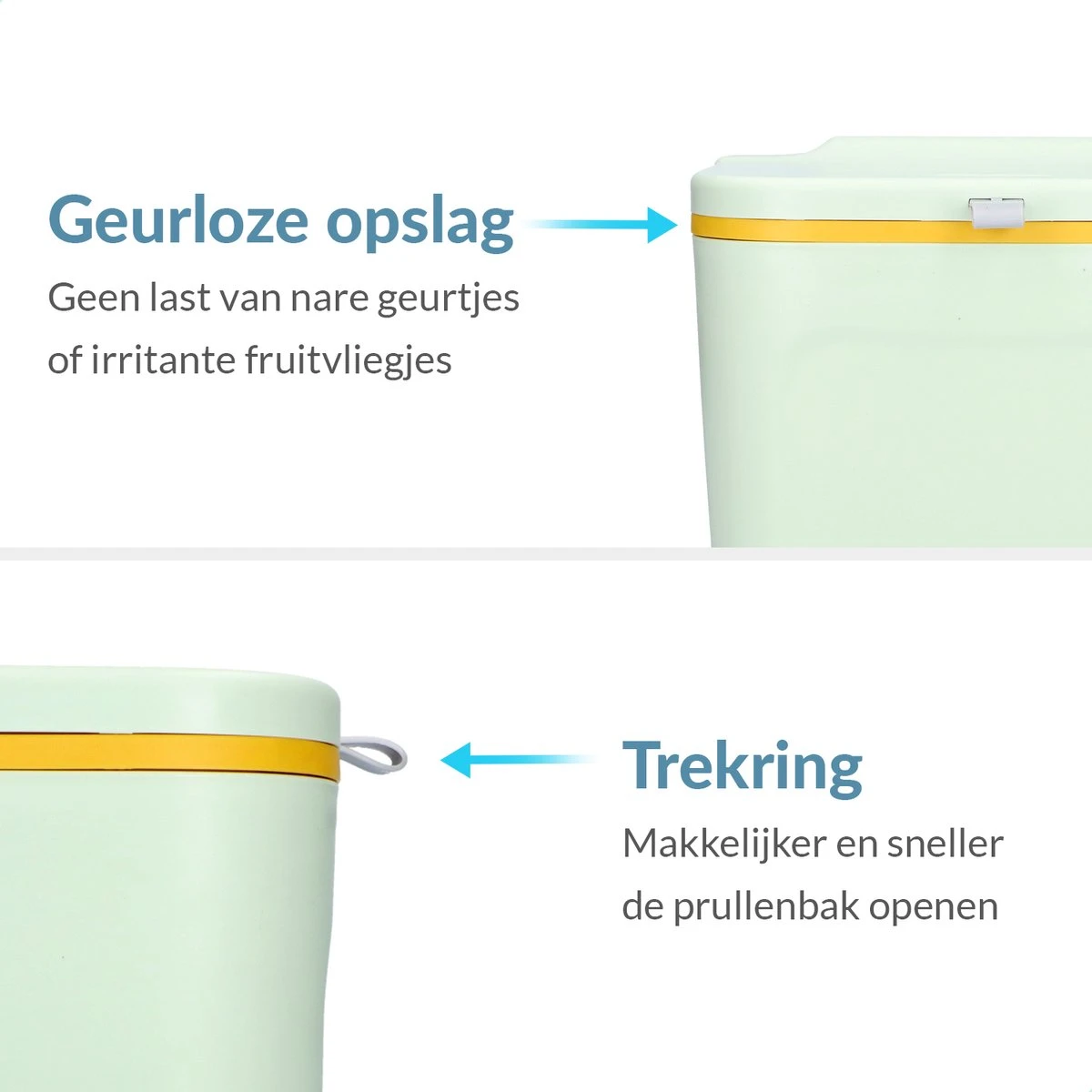 Deze prullenbak/compostbak voor binnen met speciaal ontworpen deksel is de perfecte geurloze opslag voor keukenafval. Ook super gemakkelijke voor het legen van de emmer.