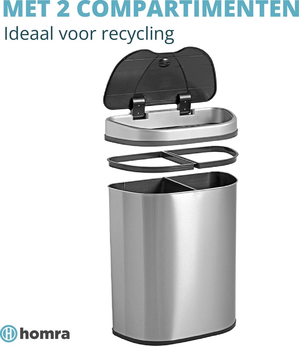 Afvalscheidingsprullenbak met sensor. 70 liter inhoud (2x 35 L). Handig en hygiënisch in gebruik en met een luxe uitstraling. Ideaal voor thuis en op kantoor!