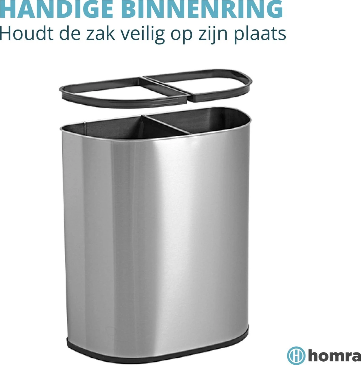 In elk compartiment zit een binnenring zodat je er makkelijk en onzichtbaar een vuilniszak in hangt.