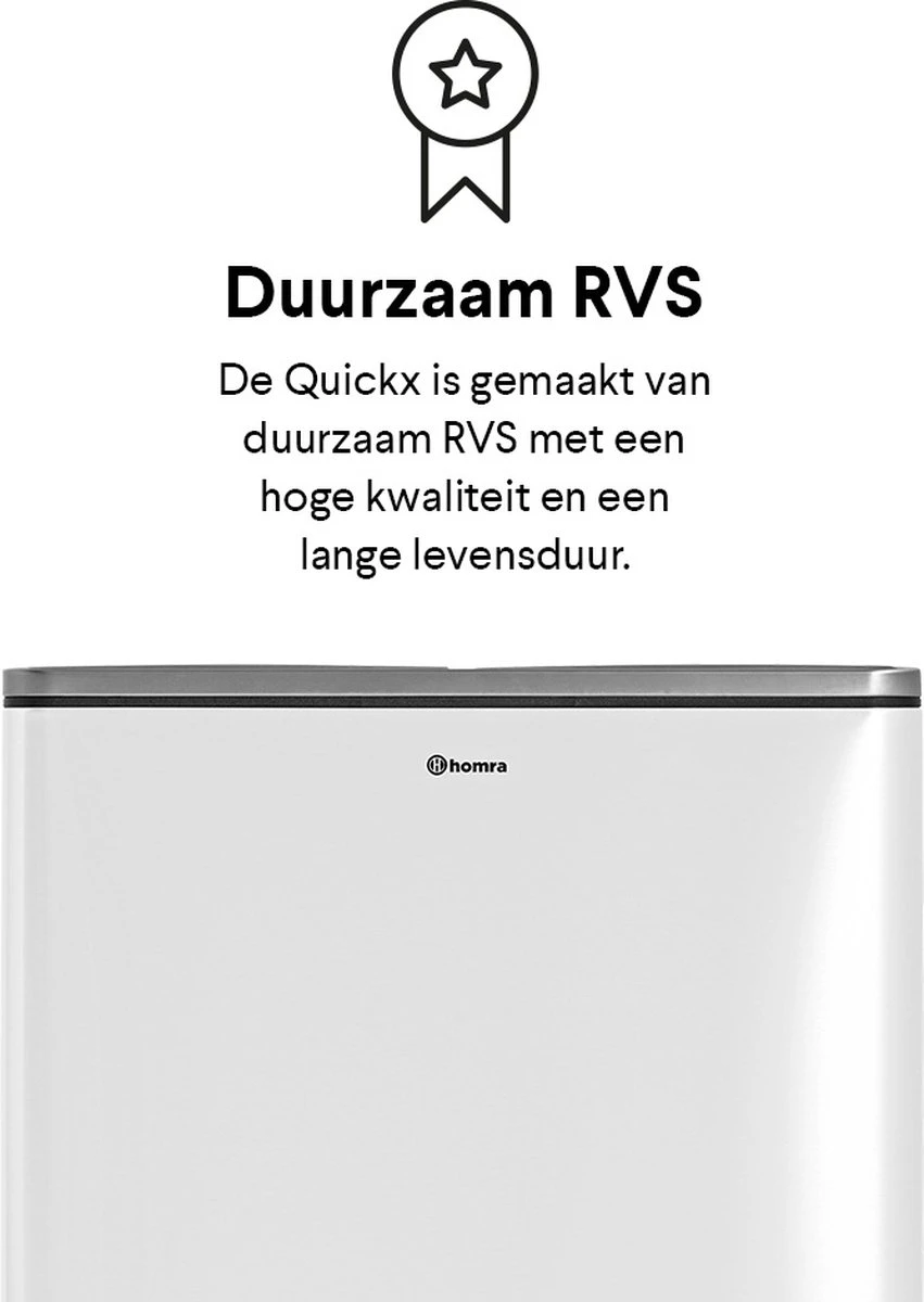 In deze pedaalemmer zitten 2 binnenbakken. Elke binnenbak heeft een capaciteit van 30 Liter. In deze bakken kan je de Bagfitter Geel-A afvalzakken perfect gebruiken. Deze zijn op maat gemaakt voor de Quickx. Is een vuilniszak vol? Dan haal je deze er snel en makkelijk uit en vervang je hem door een nieuwe vuilniszak.