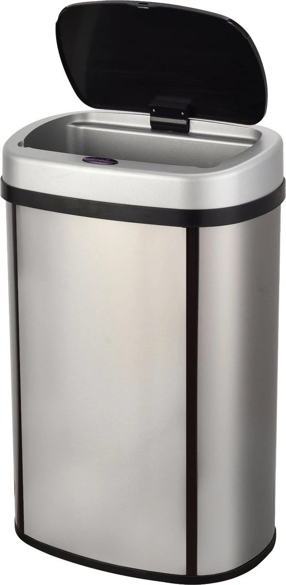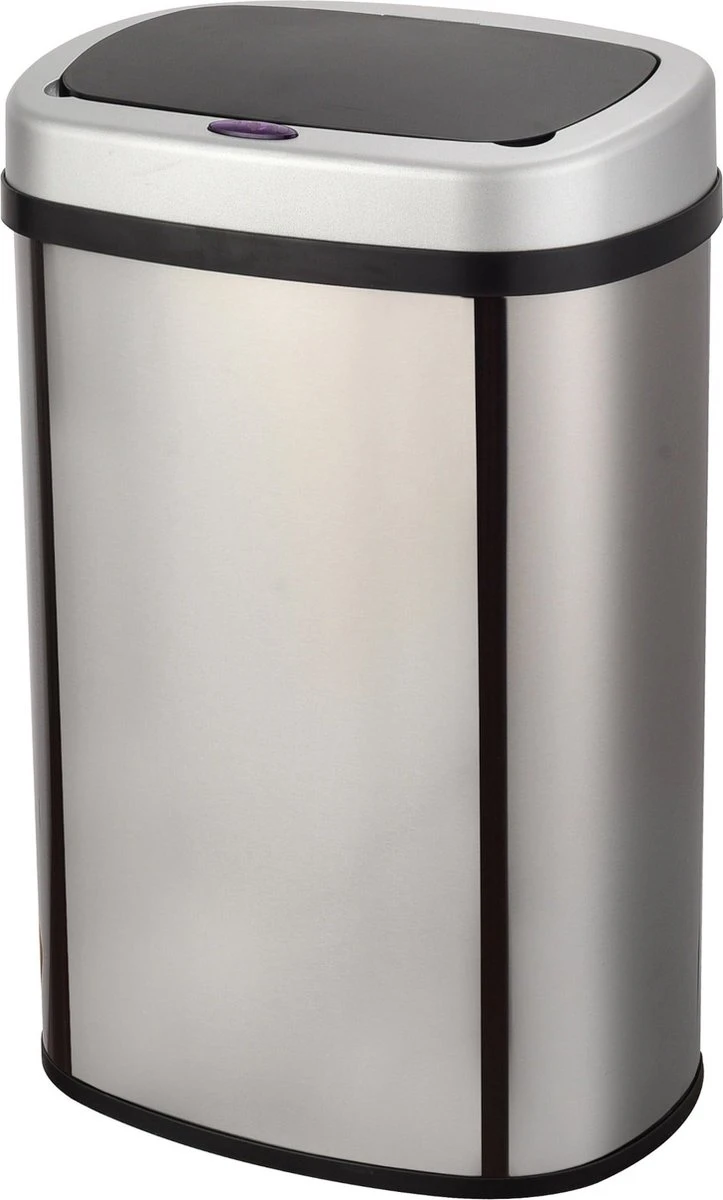 Rechthoekige automatische keukenbak met omsnoeringsband Capaciteit 58L MAJESTIC SILVRY model in roestvrij staal Geborsteld roestvrij staal afwerking Afmeting: 41x29xH65cm Gewicht: 3,4kg . Met batterij-indicator. Nieuw deksel. Roestvrijstalen behuizing (0,4 mm) en ABS-afdekking. Werkt met 4 LR06 batterijen (niet inbegrepen). AAN/UIT-knop (om het deksel open te houden). Inbegrepen: een plastic band om je tas vast te houden