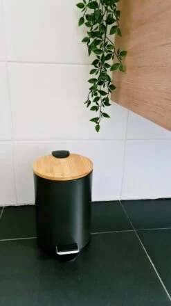 5Five – Prullenbak/pedaalemmer Zwart Metaal 3 Liter – 17 X 24 Cm – Voor Badkamer En Toilet