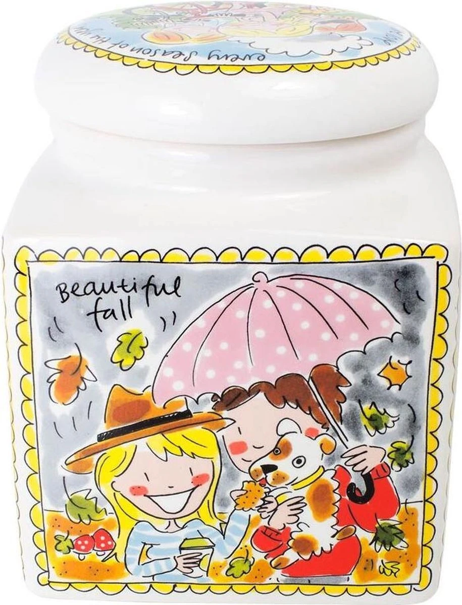 Deze vrolijke en kleurrijke voorraadpot vierkant cookies met illustraties van alle seizoenen maakt jouw keuken nog gezelliger! De opvallende en kleurrijke illustraties kenmerken de ‘Even Bijkletsen’ collectie van de twee vriendinnen uit Amsterdam: een serviescollectie met een knipoog.