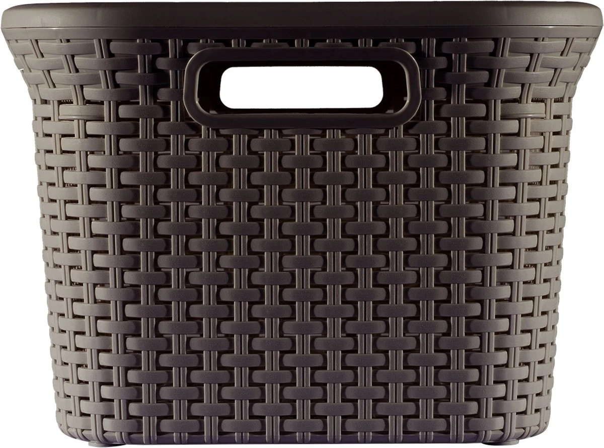 Deze Curver Style Heupwasmand 45L is qua uitstraling en look identiek aan de wasboxen in de maten 40L en 60L. Door de techniek van het open vlechtwerk is de beluchting van het wasgoed optimaal. De wasmand is voorzien van drie greepuitsparingen, het voordeel hiervan is dat u de mand ook op uw heup kunt dragen en slechts één hand nodig heeft zodat u uw ander hand vrij heeft. De mand is eenvoudig te reinigen. Daarnaast is de wasmand gemaakt van minstens 70% gerecycled materiaal.