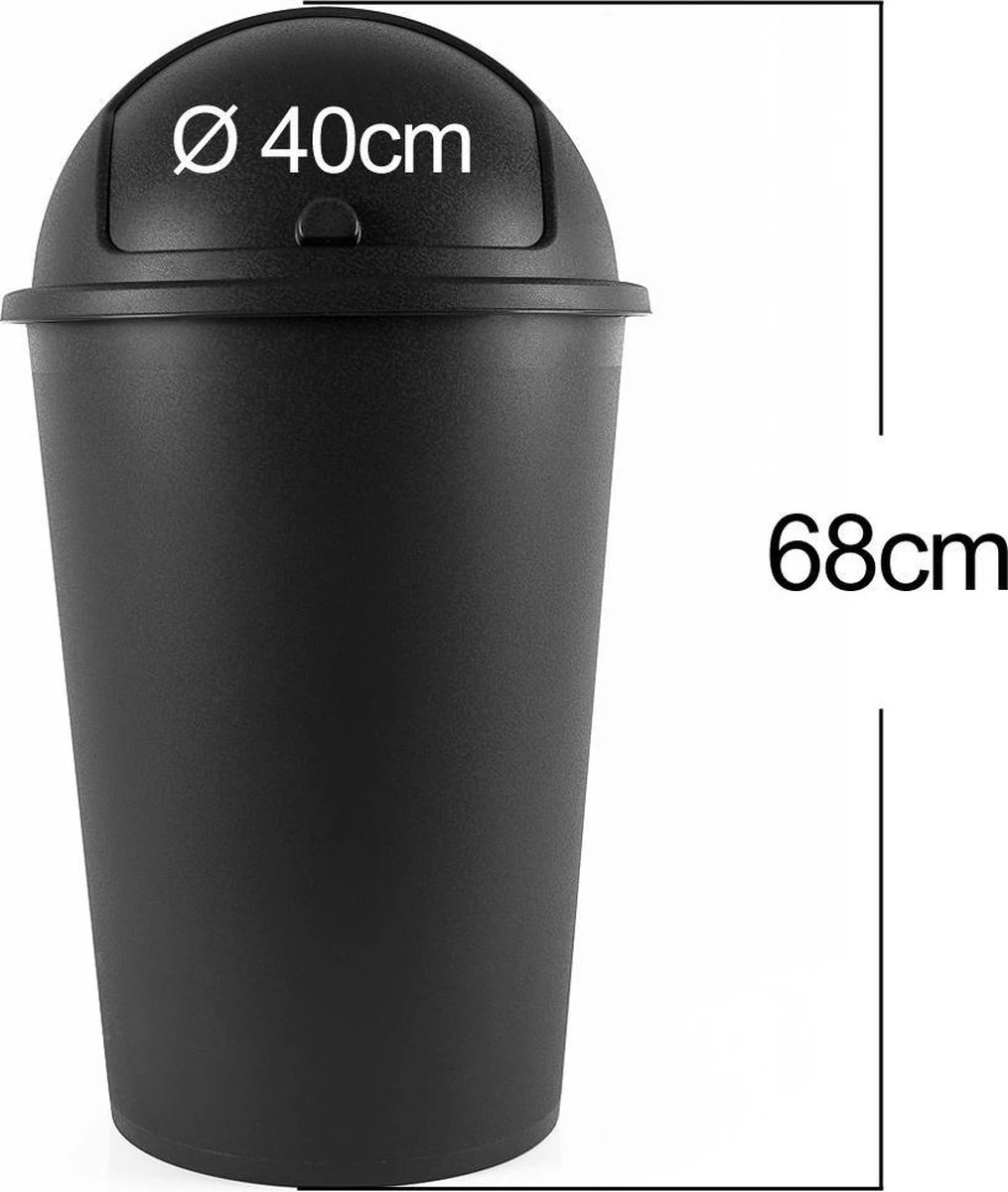 – 68 cm x 40 cm , de handige prullenbak heeft een capaciteit van 50 liter en is voorzien van een schuifdeksel.