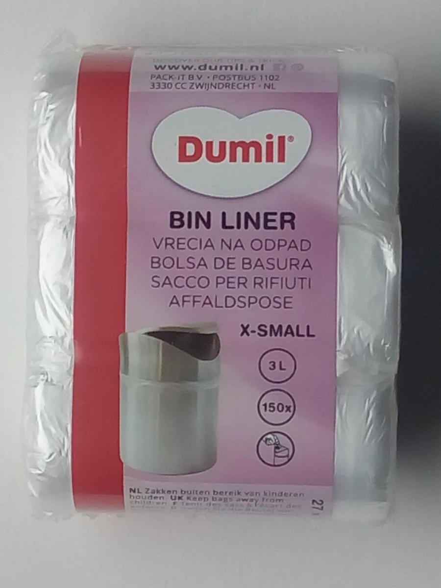 De vuilzak heeft slechts 3 liter inhoud en meet ongeveer 27 x 30 cm.