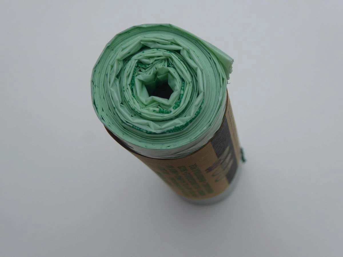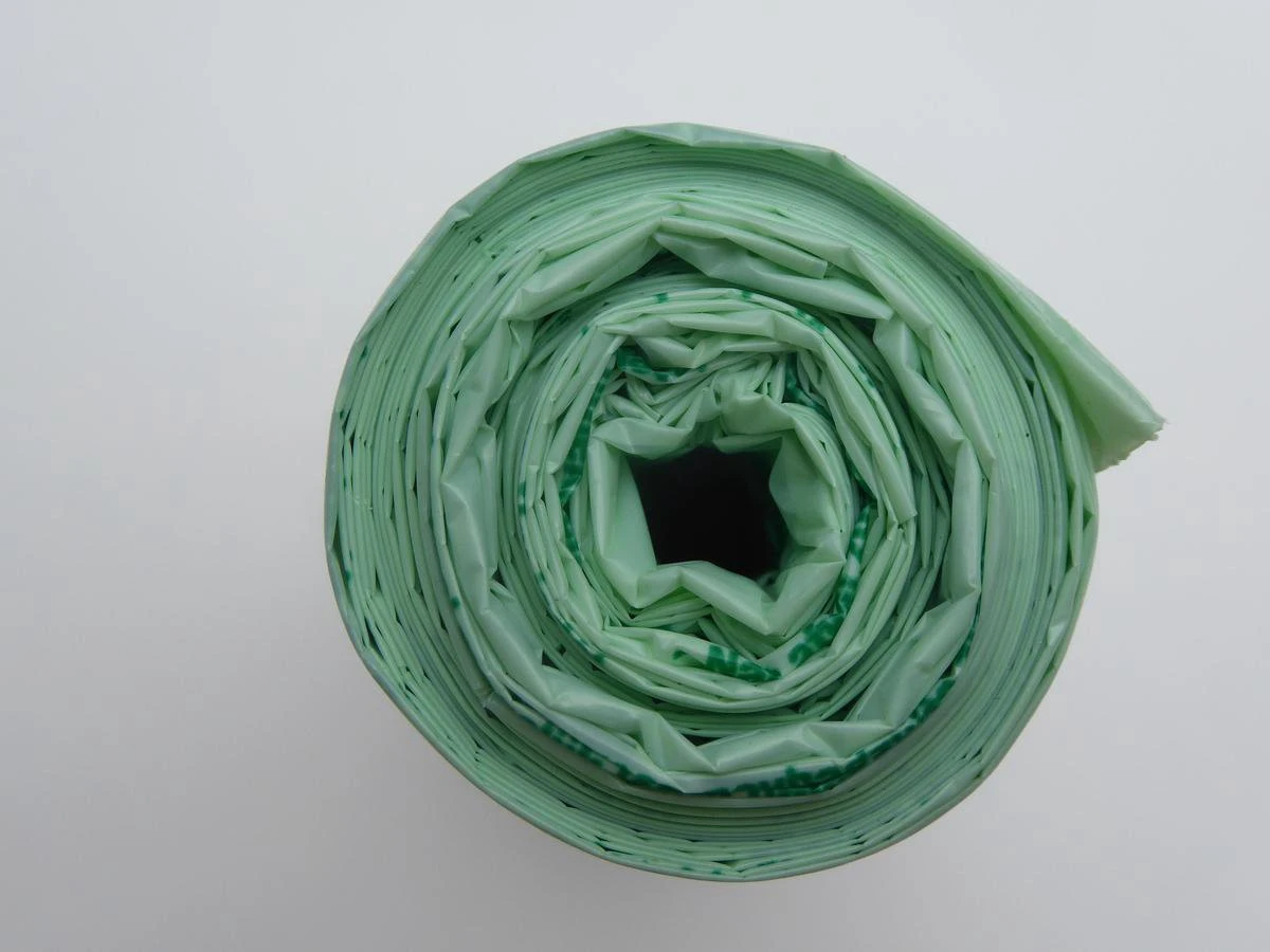 De afvalzak is volledig composteerbaar en gecertificeerd volgens EN 13432.