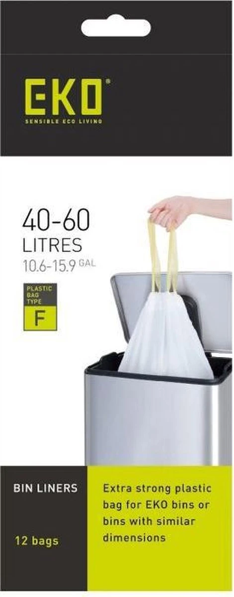 De afvalzakken van EKO zijn voorzien van een trekbandsluiting waardoor de volle afvalzak gemakkelijk te verwijderen is en goed te sluiten als de zak vol is. Deze witte afvalzakken hebben een inhoud van tussen de 40 en 60 liter en zijn gemaakt van extra sterk polyethyleen.