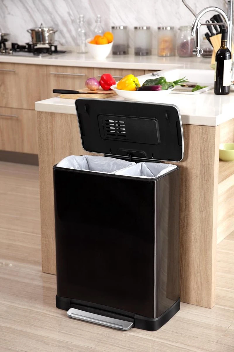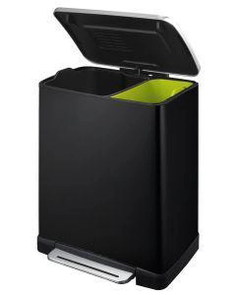 Deze EKO E-Cube pedaalemmer is voorzien van 2 kunststof binnenemmers die samen een inhoud hebben van (28+18) liter. De pedaalemmer is gespecialiseerd in het scheiden van afval. De pedaalemmer is fingerprint proof en is voorzien van een gedempt deksel waardoor het deksel geruisloos sluit.