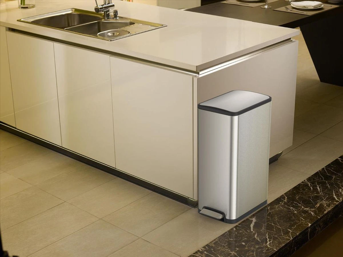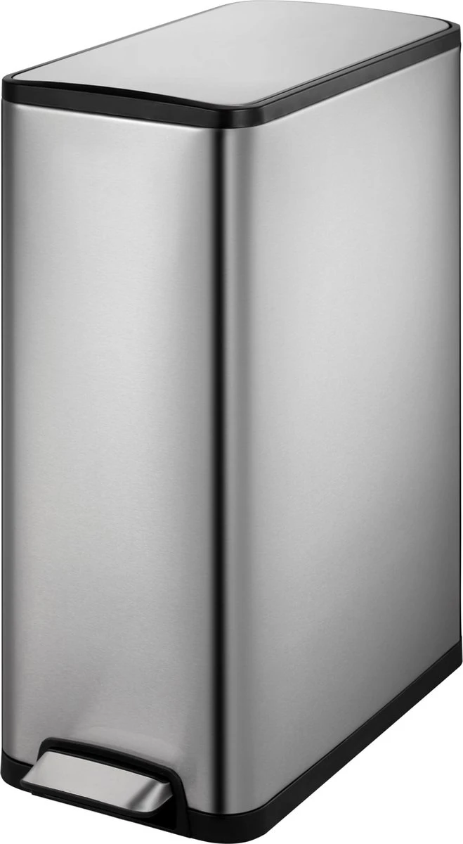 Hij is uitgerust met een geruisloos sluitend deksel en is ook een ideale afvaloplossing voor elke moderne keuken. Bovendien maken het slanke design en het pedaal aan de smalle kant hem perfect voor kleine ruimtes. Verder is deze EKO pedaalemmer gemaakt van geborsteld roestvrij staal en heeft hij ook een ingenieuze vingerafdrukbestendige coating.