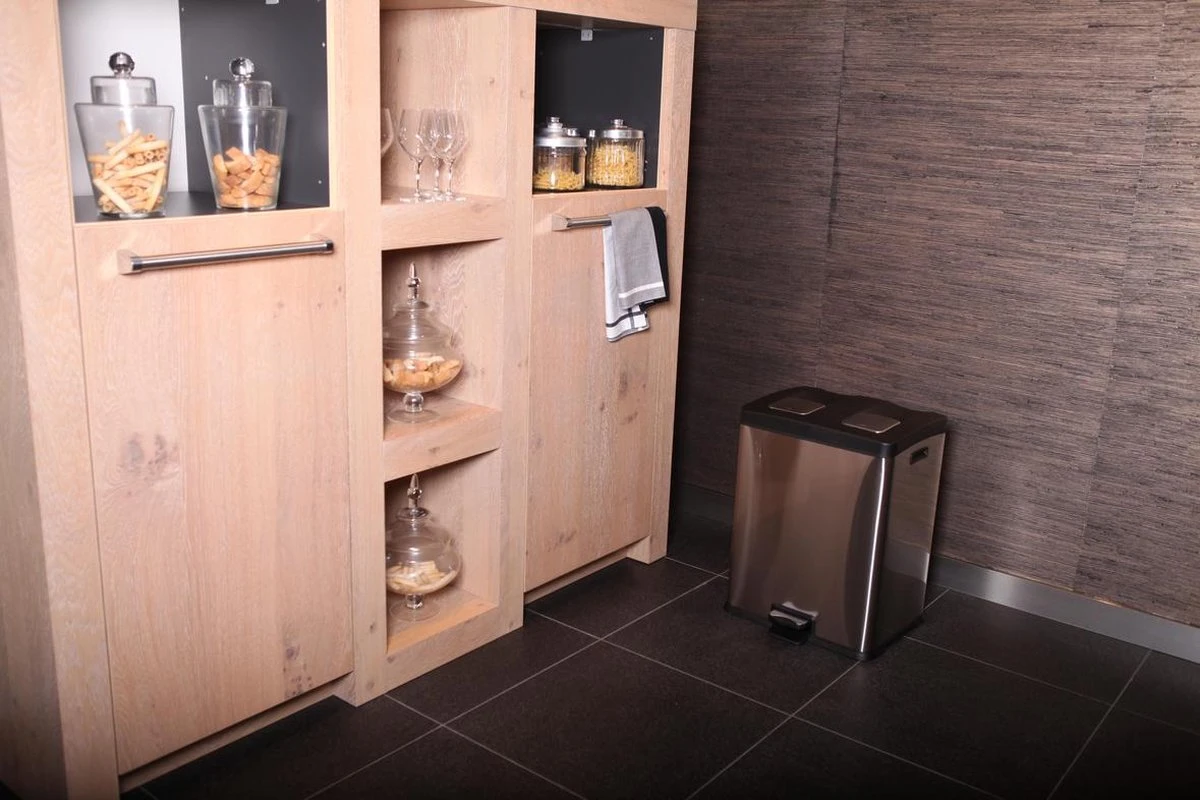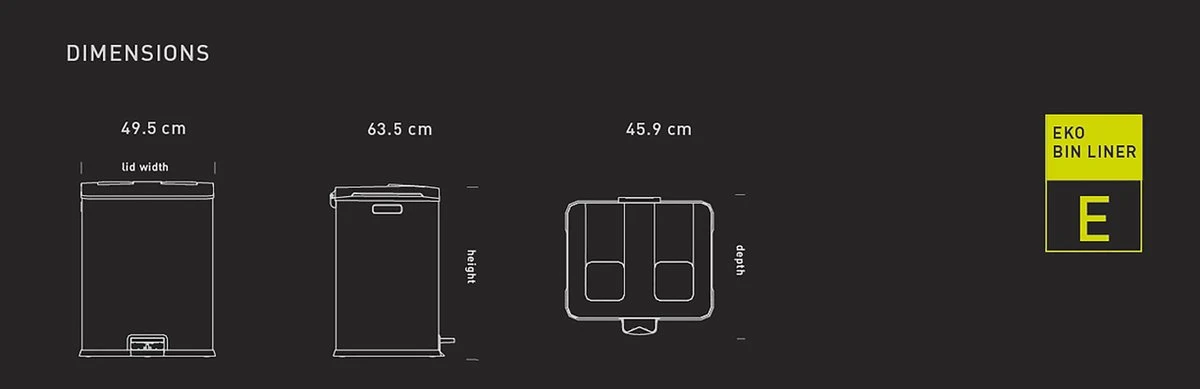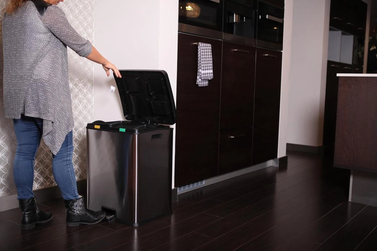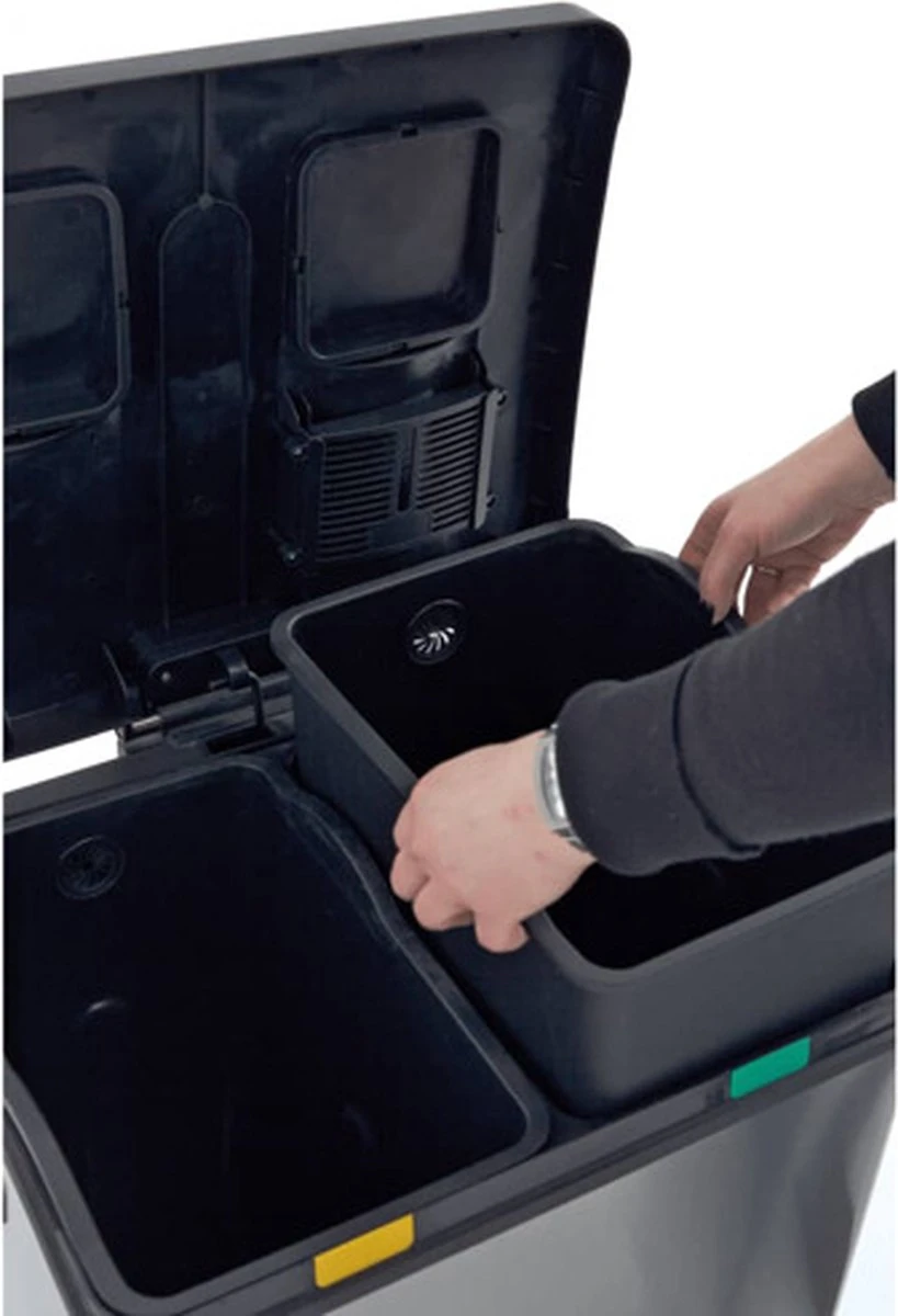 Deze ruime rechthoekige EKO pedaalemmer van mat RVS heeft 2 kunststof binnenemmers met een inhoud van (2×30 liter) 60 liter. De pedaalemmer is voorzien van een gedempte kunststof deksel en is Fingerprintproof. Doordat de prullenbak 2 binnenemmers heeft is het erg gemakkelijk uw afval gescheiden te houden.