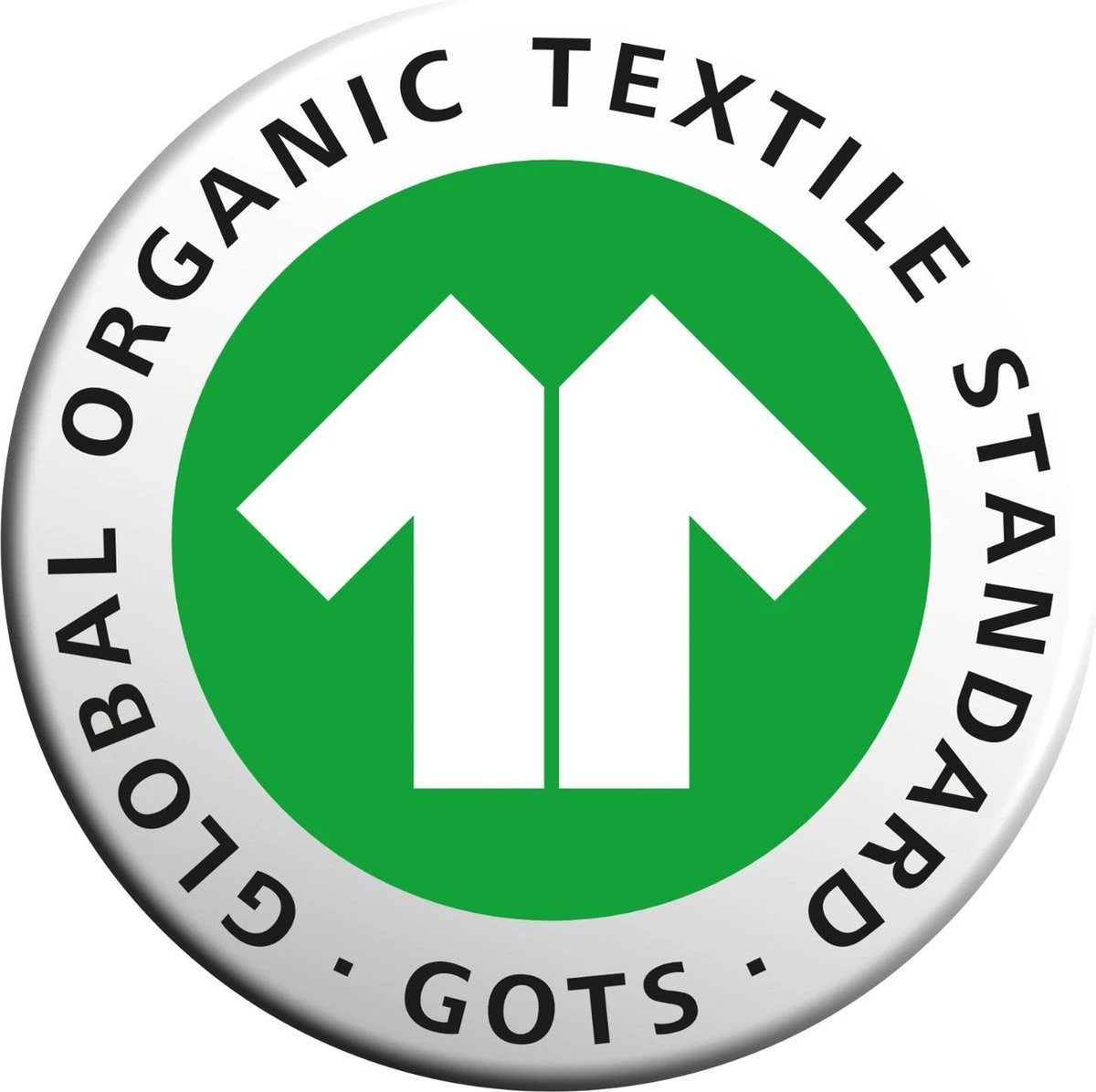 * De GOTS (Global Organic Textile Standard) certificering staat voor ondermeer goede werkomstandigheden in de hele keten, geen kinderarbeid en geen gebruik van pesticiden.