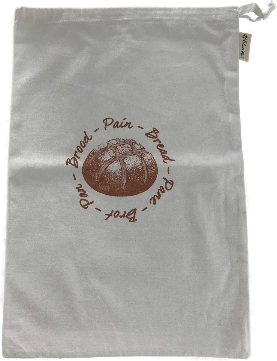 Met een treklint van katoen, in plaats van een koordje, om de herbruikbare broodzak goed te kunnen sluiten. Neem de zak gewoon mee naar de bakker of supermarkt en spaar telkens een plastic zak uit. Het brood blijft hier lekker vers in en kan ‘ademen’. Je kan de broodzak ook gebruiken om je brood mee in te vriezen.