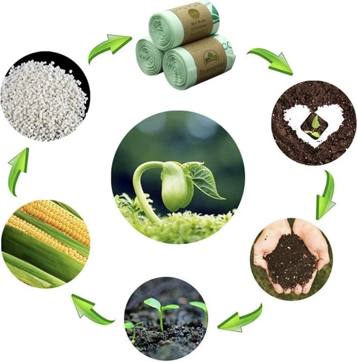 Doordat de afvalzakken gemaakt zijn van maiszetmeel zijn deze 100% composteerbaar. Daarom is dit de perfecte vervanging voor de normaal plastic zak, en zorgen we samen voor een beter milleu.