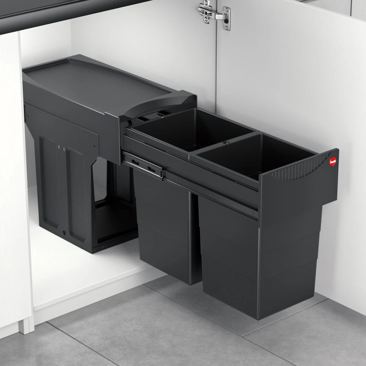 De Hailo Tandem inbouwafvalemmers schuiven helemaal naar buiten open waardoor je makkelijk het afval weggooit. Hij heeft twee binnenemmers, hierdoor is afval scheiden een fluitje van een cent en denk je braaf aan het milieu!