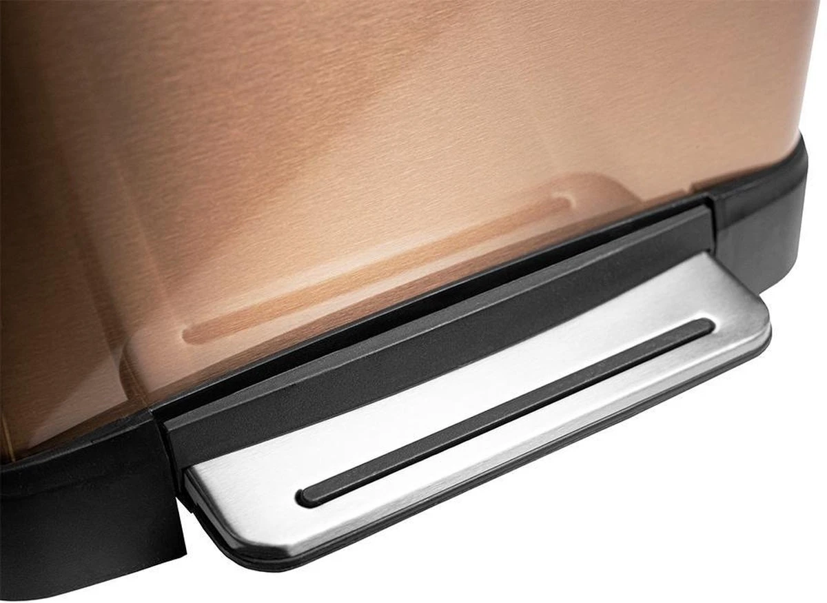 Deze koperkleurige pedaalemmer is perfect voor in de keuken, kantine, woonkamer en past perfect op elk kantoor De prullenbak heeft een prachtig design en is zeer eenvoudig in gebruik. De prullenbak is zeer hygiënisch, want hij opent door middel van een pedaal. Plaats je voet op het pedaal en de deksel opent, waardoor je afval kan weggooien zonder de prullenbak aan te raken. Super hygiënisch!
