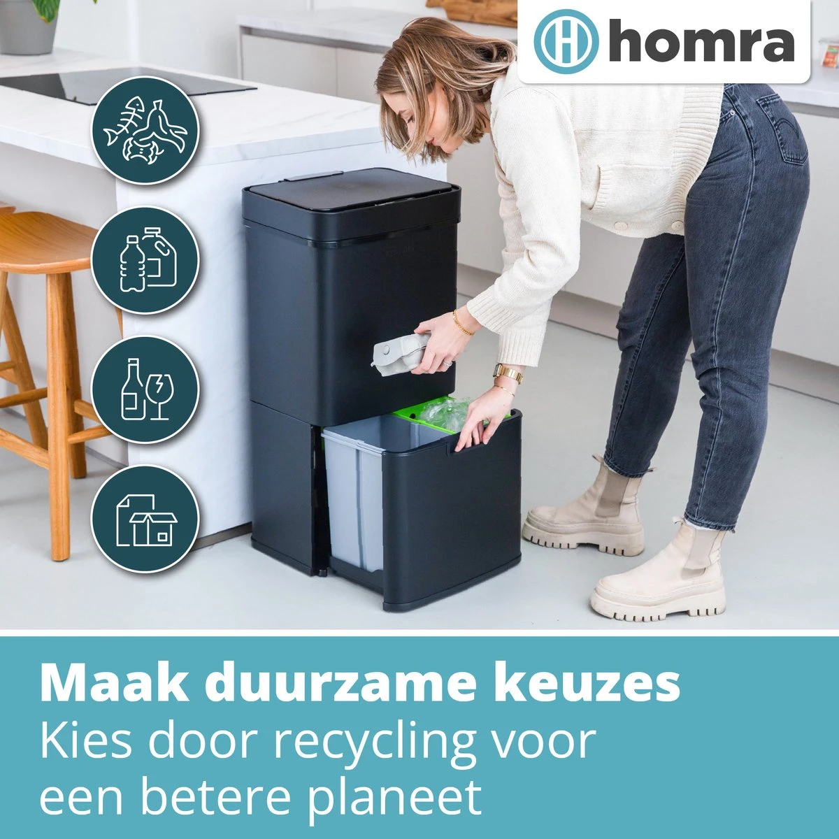 HOMRA is een Nederlands merk.De gehele HOMRA Prime Collection is ontworpen met het oog op kwaliteit, duurzaamheid, comfort en design. Uiteraard bieden wij de beste service en staat klanttevredenheid bij ons hoog in het vaandel.Doe jezelf en het milieu een plezier; bestel direct deze prullenbak.