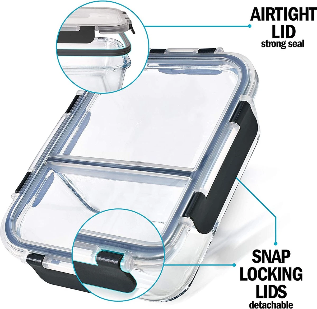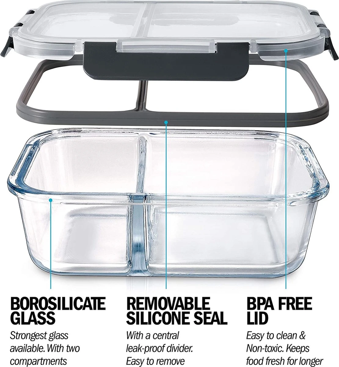 - ★ VERDEELDE VOEDSEL VERSHOUDDOZEN ★ Perfect om voedsel gescheiden te houden tot het tijd is om te eten. Glazen verdeler en siliconen afdichting zorgen voor een COMPLETE scheiding tussen de 2 compartimenten. Deksel met kliksluiting technologie sluit voedsel luchtdicht af en houdt de maaltijd vrij van bacteriën van buitenaf