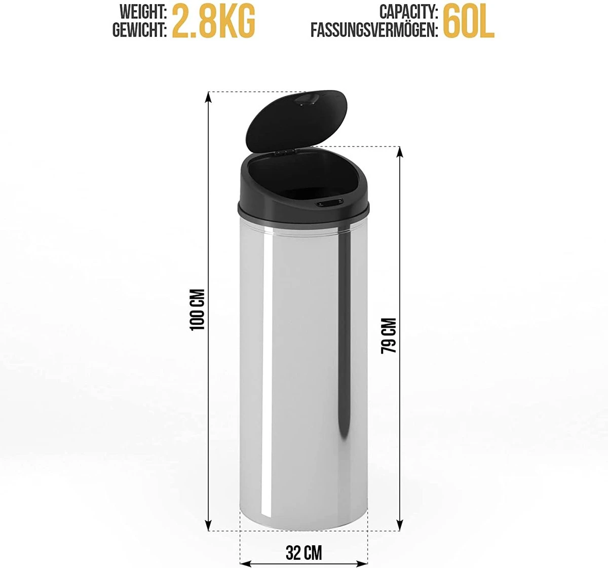 - Voor iedereen gemaakt: onze robuuste en duurzame vuilnisemmer is bovendien kinderlijk eenvoudig te gebruiken. Alles wat je nodig hebt zijn 4 AA 1,5 V batterijen