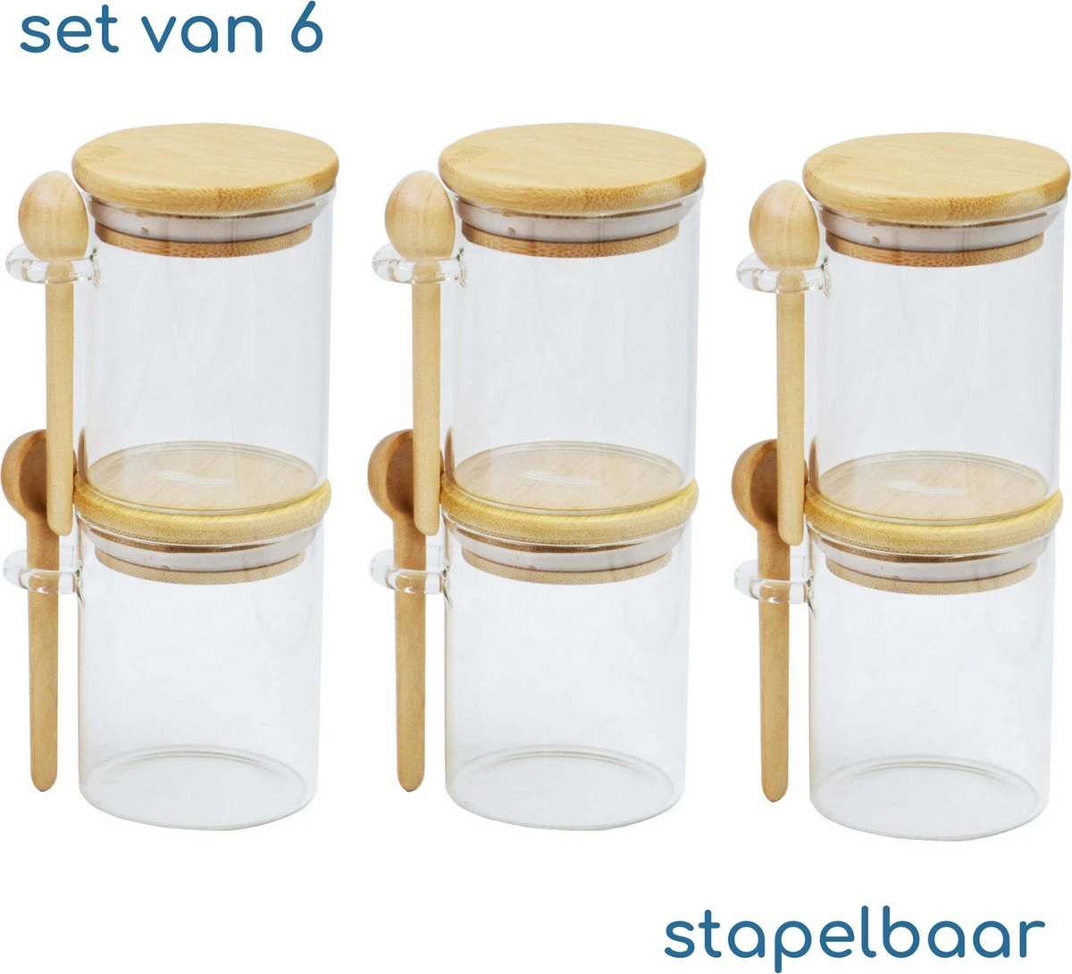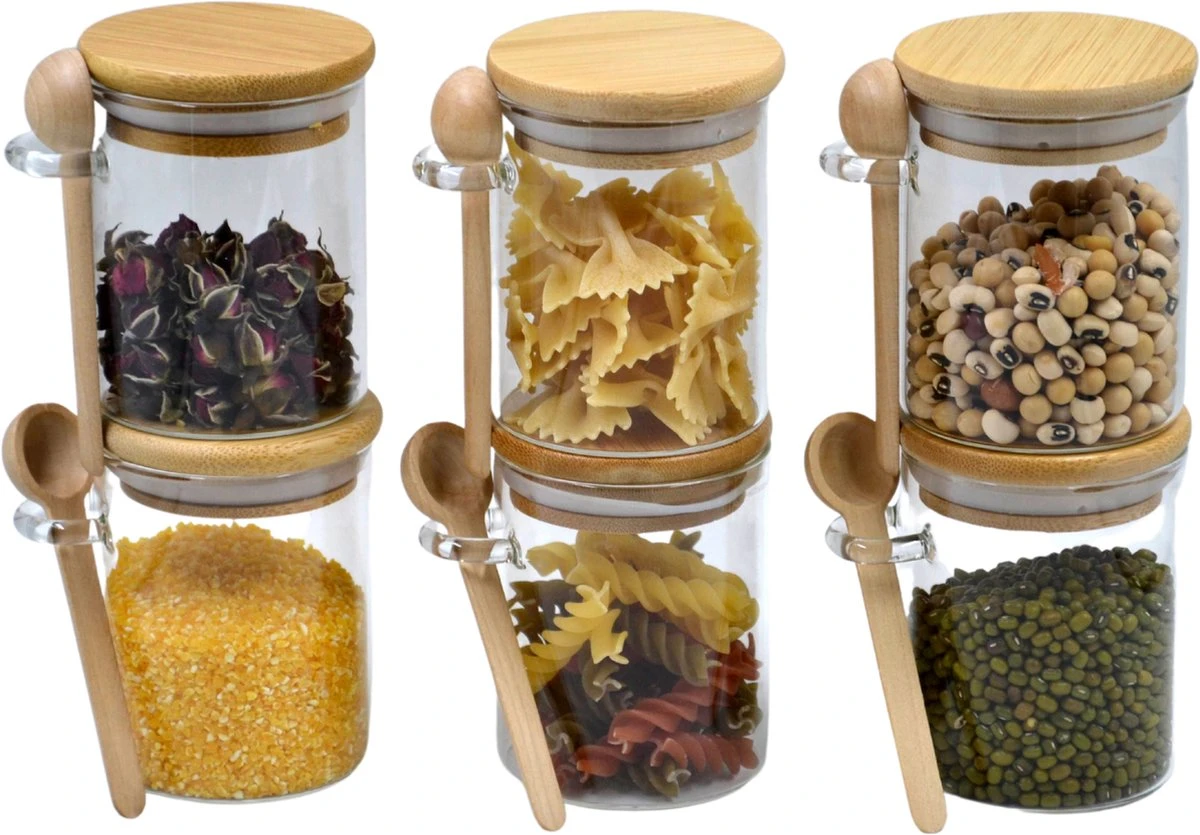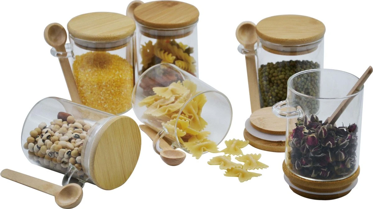 6 glazen potjes met bamboe deksel