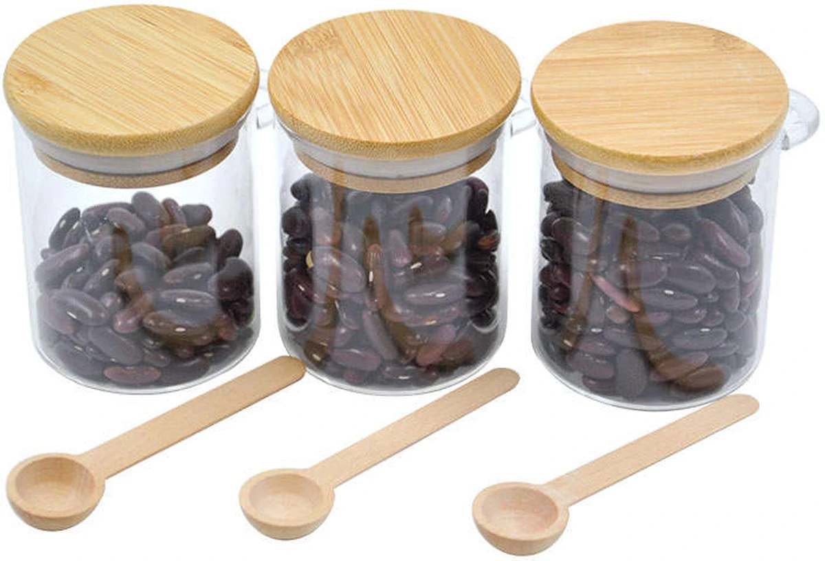 Zie je het al voor je in je keuken, deze jarif glazen kruidenpotjes met bamboe deksel en bamboe lepeltje..? Onze potjes onderscheiden zich van de meeste andere kruidenpotjes door het oortje aan de potjes en de mooi vormgegeven bamboe lepeltjes. Als je van stijl en van sfeer houdt is dit set precies wat jij zoekt. Een echte blikvanger! Daarbij zijn de potjes vanwege de brede opening handig in gebruik. Het deksel sluit stevig en luchtdicht af, dus het aroma van je kruiden blijft lang bewaard. Maar natuurlijk kun je de potjes ook vullen met andere dingen zoals thee, snoepjes, zaden, nootjes enz.