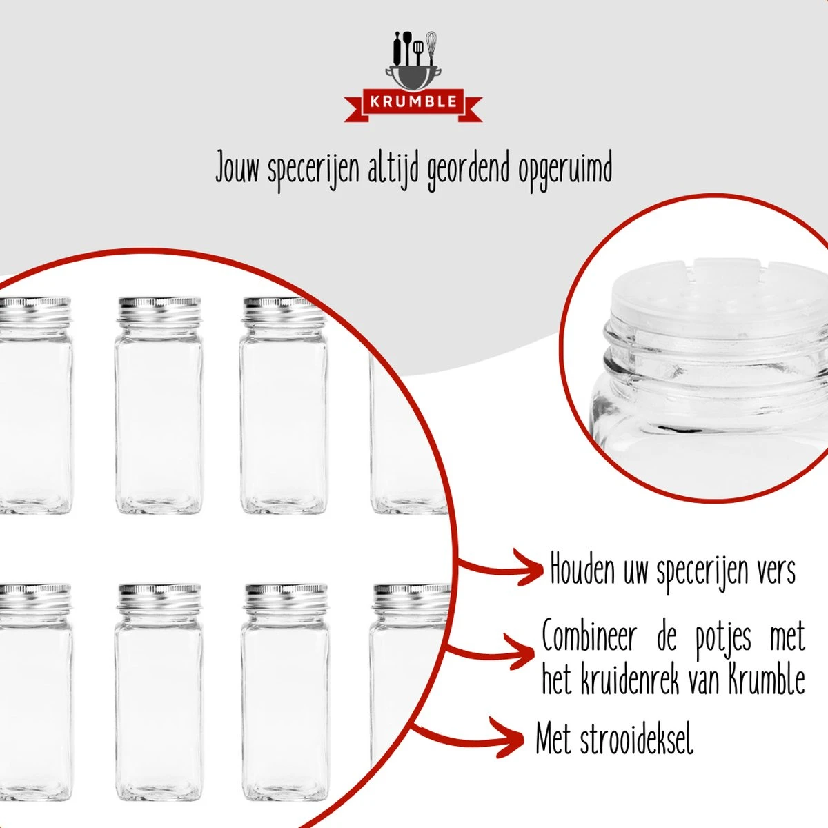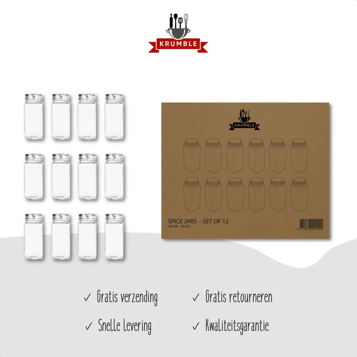 Veel kruidenpotten worden geproduceerd van metaal of kunststof. Het grote nadeel van deze potten is dat je de inhoud niet zo makkelijk kunt zien en dit bijvoorbeeld aan moet geven met een labeltje aan de buitenkant. Je ziet eenvoudig en snel de inhoud dankzij het glazen design van deze kruidenpotjes set van 12 met deksel.