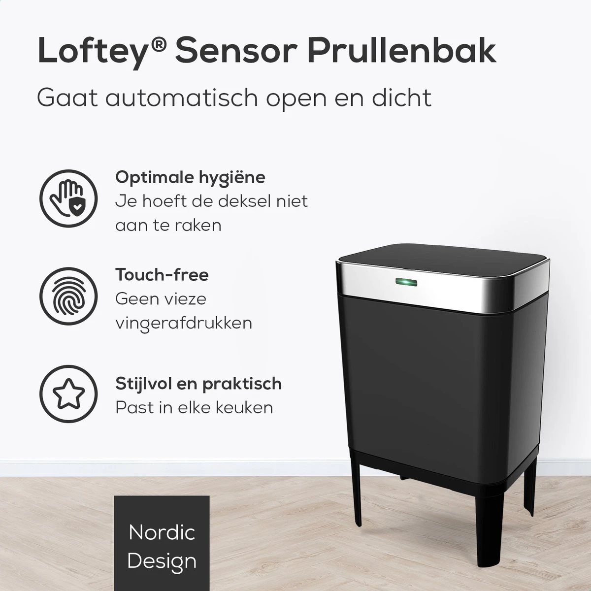 Ultiem gebruiksgemak, optimale hygiëne en stijl: de sensor prullenbak van Loftey heeft het allemaal!