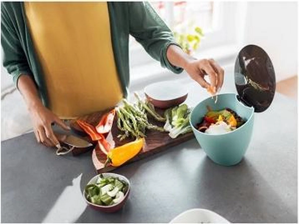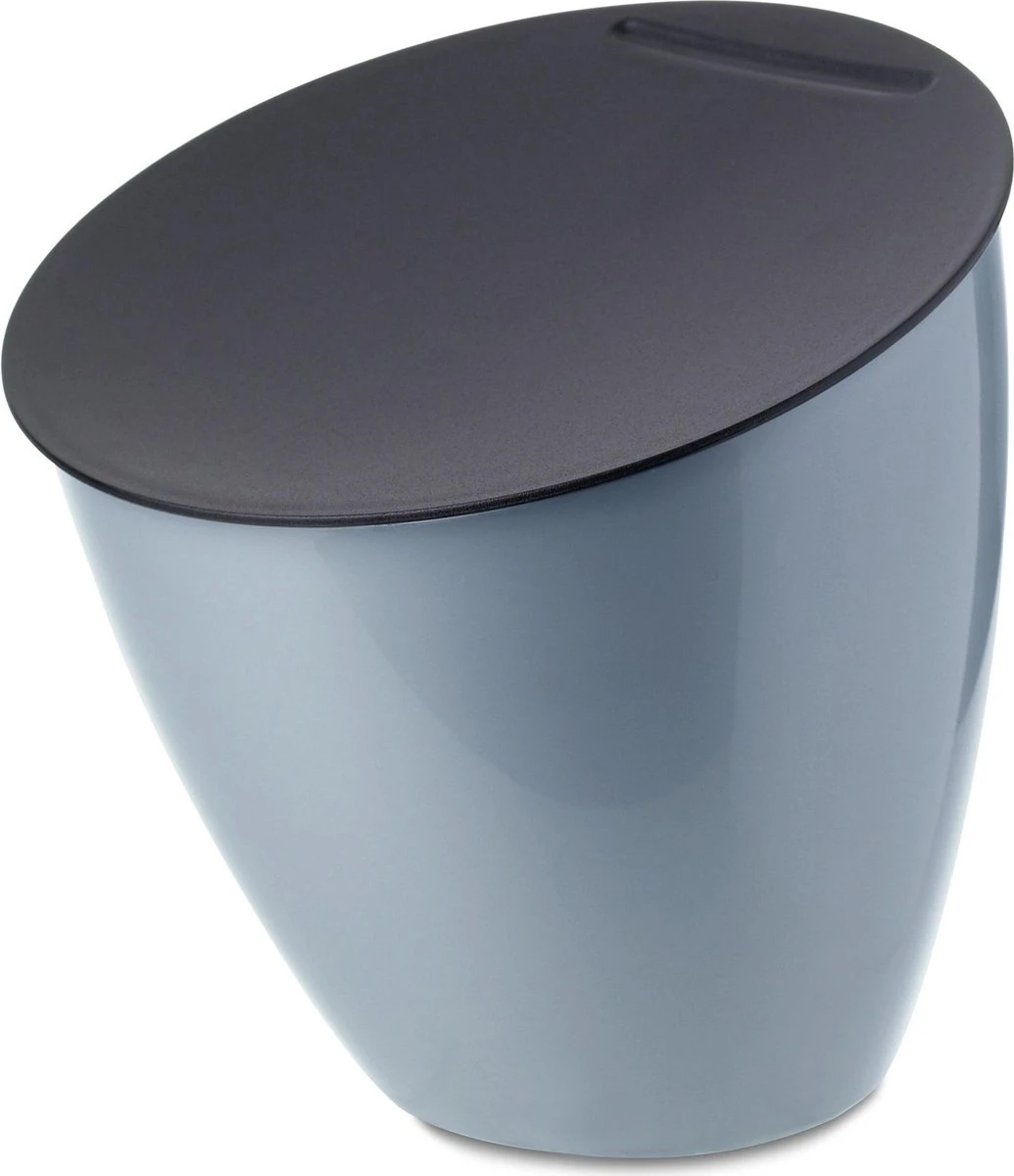Afvalbakje Calypso in de kleur Nordic blue. Geen handiger afvalbakje voor op het aanrecht dan de Calypso van Mepal. Deze blauwe afvalcontainer neemt weinig ruimte in, heeft een grote vulopening, werkt zonder zakjes, is draagbaar en gemakkelijk te reinigen. Voor koffiepads en al uw kleine keukenafval! Het afvalbakje is te gebruiken in de keuken en badkamer.