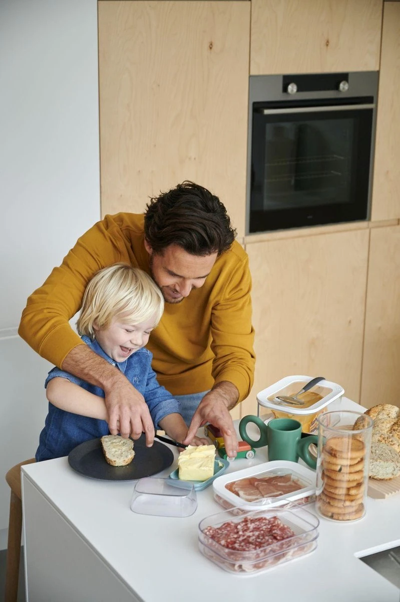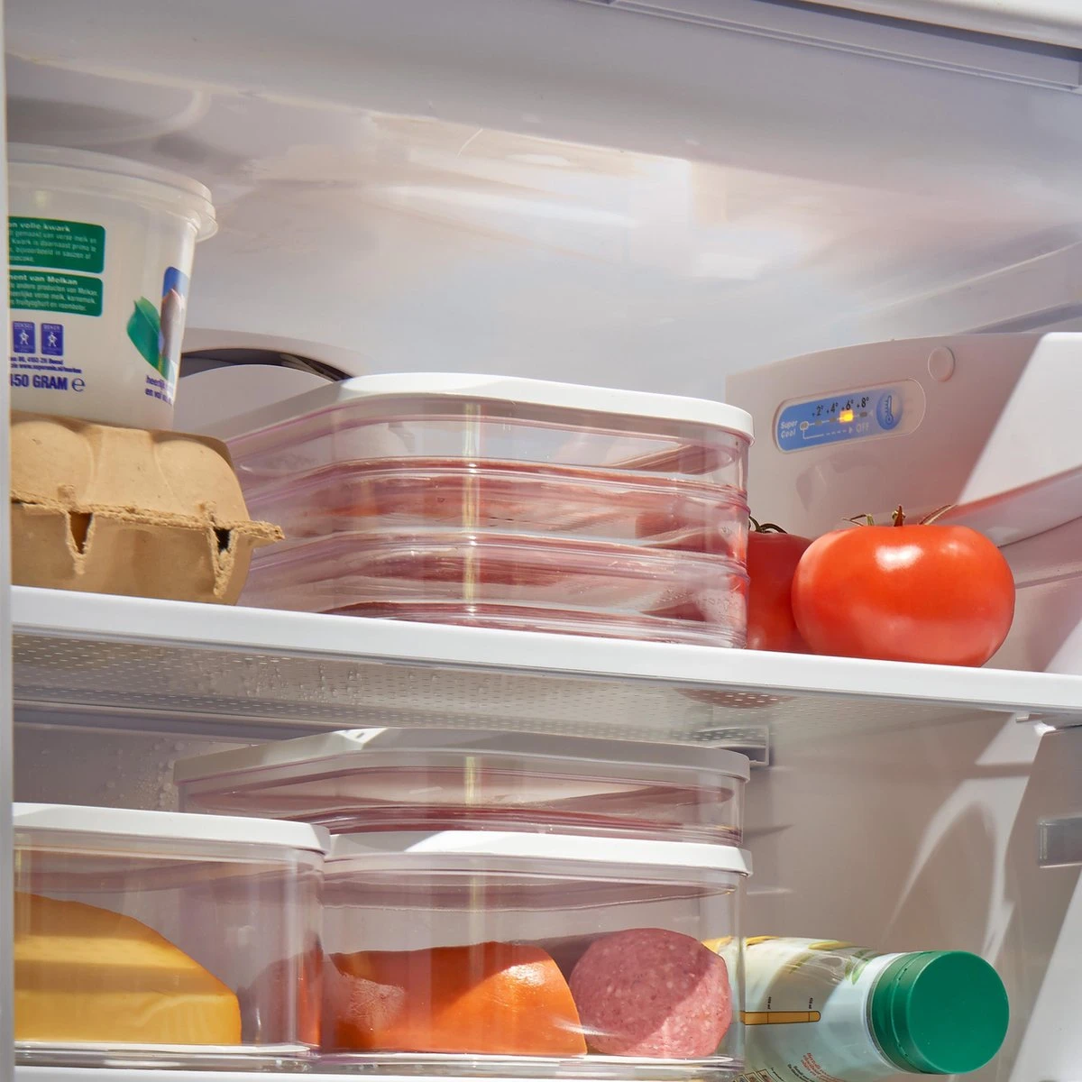 Kaasdoos Modula, voorzien van een doorzichtige deksel met witte ring. De rechthoekige vershouddoos met deksel heeft een inhoud van 2000 ml, is standaard voorzien van een anticondens tray en geeft direct zicht op inhoud, ook in de koelkast! De witte afdichtring zorgt voor een perfecte afsluiting, waardoor deze kaasbak geschikt is voor het bewaren van diverse kaassoorten. De Modula bewaardozen van Mepal zijn verkrijgbaar in verschillende maten en uitvoeringen, liggen goed in de hand en zijn makkelijk te openen. Bovendien is de kaasdoos stapelbaar en vaatwasmachinebestendig. Hoe veeleisend u ook bent: Modula bewaardozen zijn erop berekend!