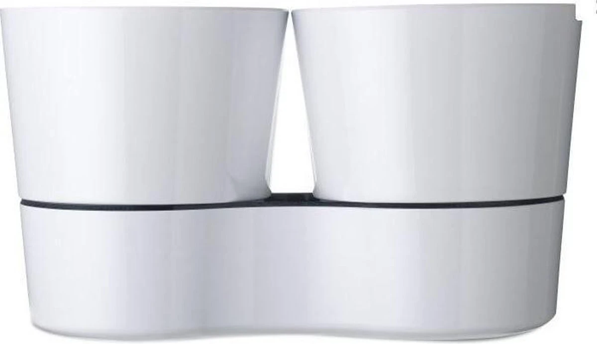 Kruidenpot Twin in de kleur wit. Voor de finishing touch van een heerlijke maaltijd, maar ook voor het beetje extra op een broodje kaas zijn verse kruiden onmisbaar. Daarom bracht Mepal een paar jaar geleden de kruidenpotjes op de markt, waarmee smaakmakers als basilicum, peterselie, bieslook en munt perfect in de keuken kunnen worden bewaard. In navolging van de kruidenpotjes is er nu de kruidenpot Twin: een grotere variant die plek biedt aan twee verschillende verse kruiden of andere plantjes. De potjes zien er fraai uit en delen samen een waterreservoir, waarmee wordt voorkomen dat de kruiden uitdrogen. De plantjes nemen via een katoenen hydrokoordje namelijk precies de hoeveelheid water op die ze nodig hebben. Ook praktisch: het grote waterreservoir heeft een inhoud van maar liefst 1 liter en hoeft maar één tot twee keer per week te worden bijgevuld. De Twin kruidenpot voor verse kruiden wordt standaard geleverd met 2 pinnetjes met koordjes en deze onderdelen kunnen bovendien eenvoudig worden bijbesteld. Dat is pas duurzaam!