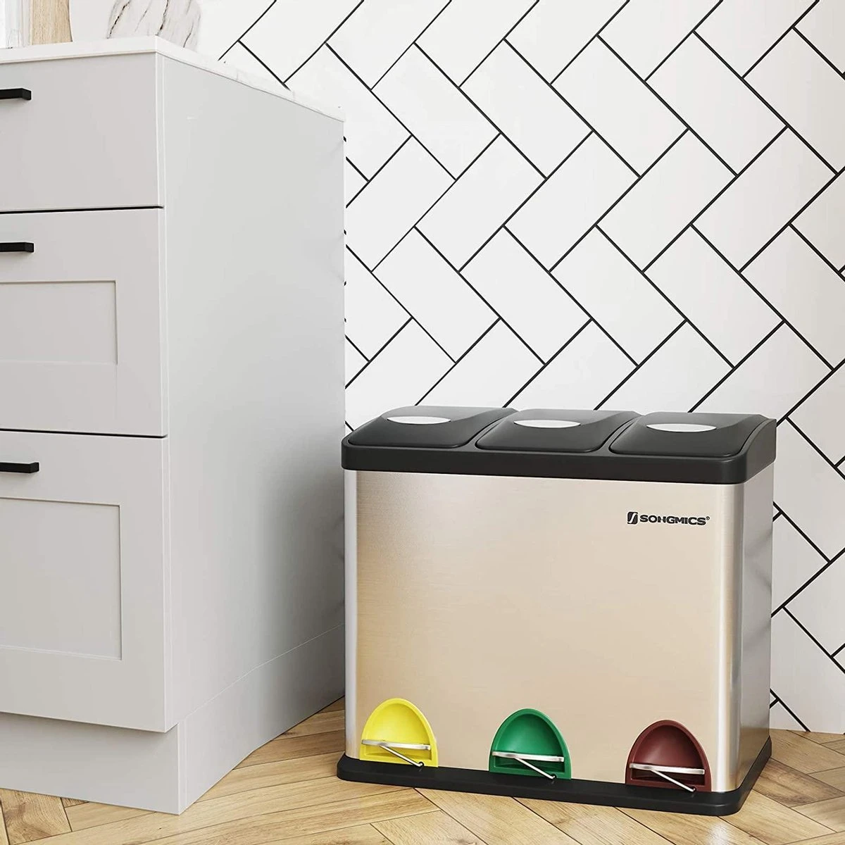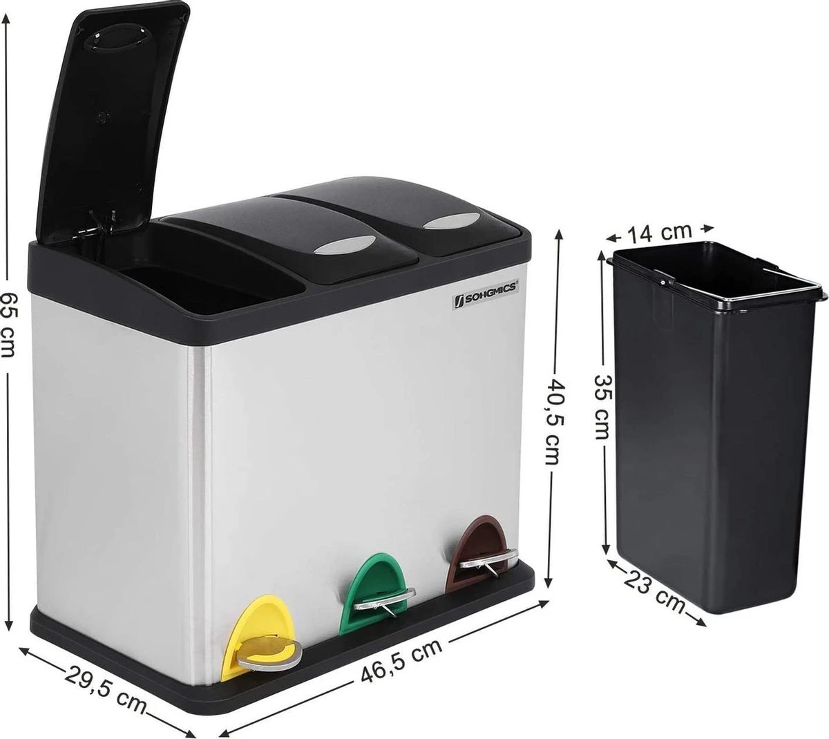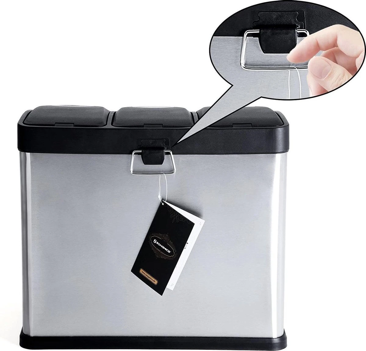 - Wat je krijgt: Een moderne afvalbak met 3 compartimenten, waarmee u uw afval gemakkelijk kunt sorteren. Dus trakteer jezelf op deze afvalbak en creëer een schoon huis