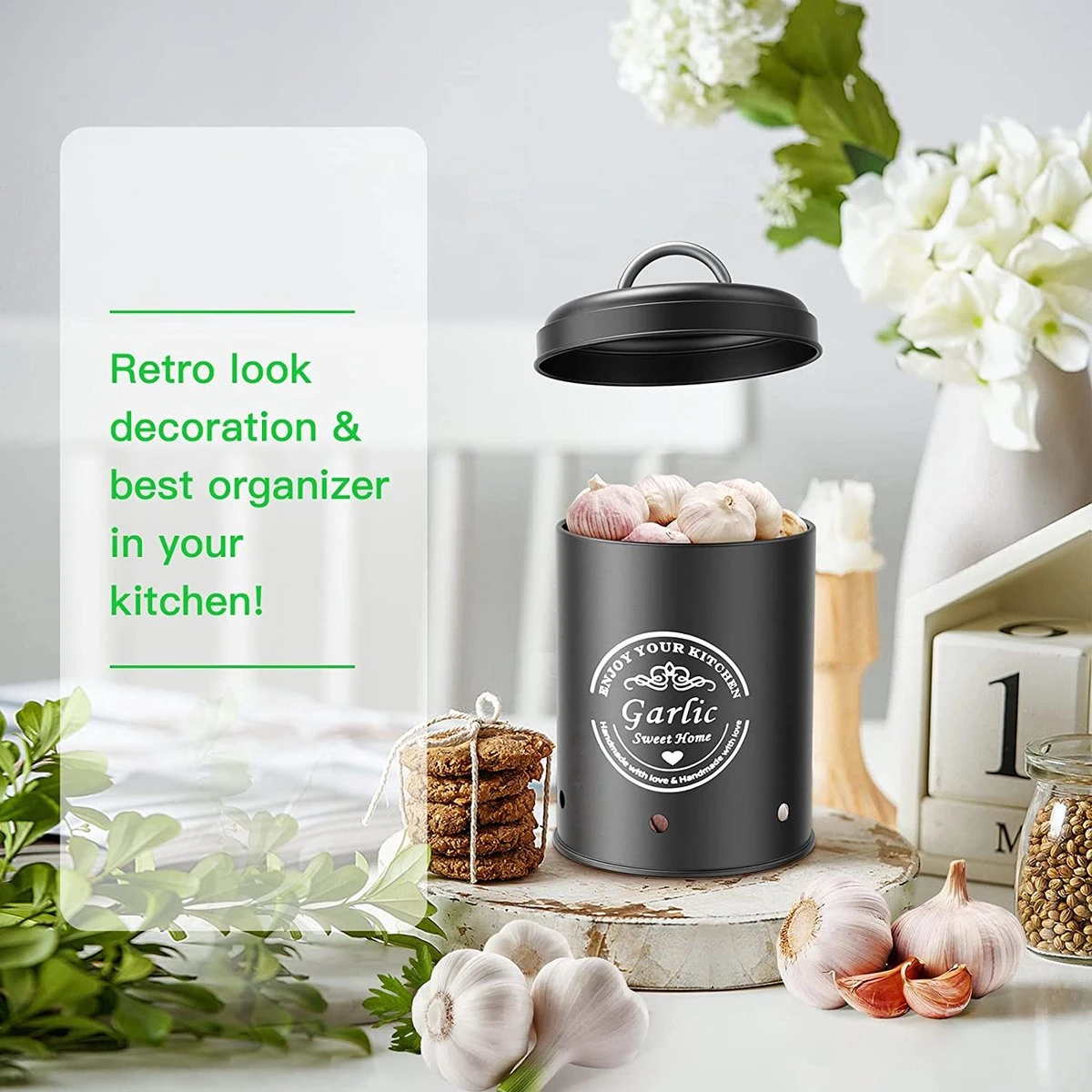Maak je geen zorgen, onze voorraaddozen voor de keuken beschermen aardappelen, uien en knoflook goed en langer.