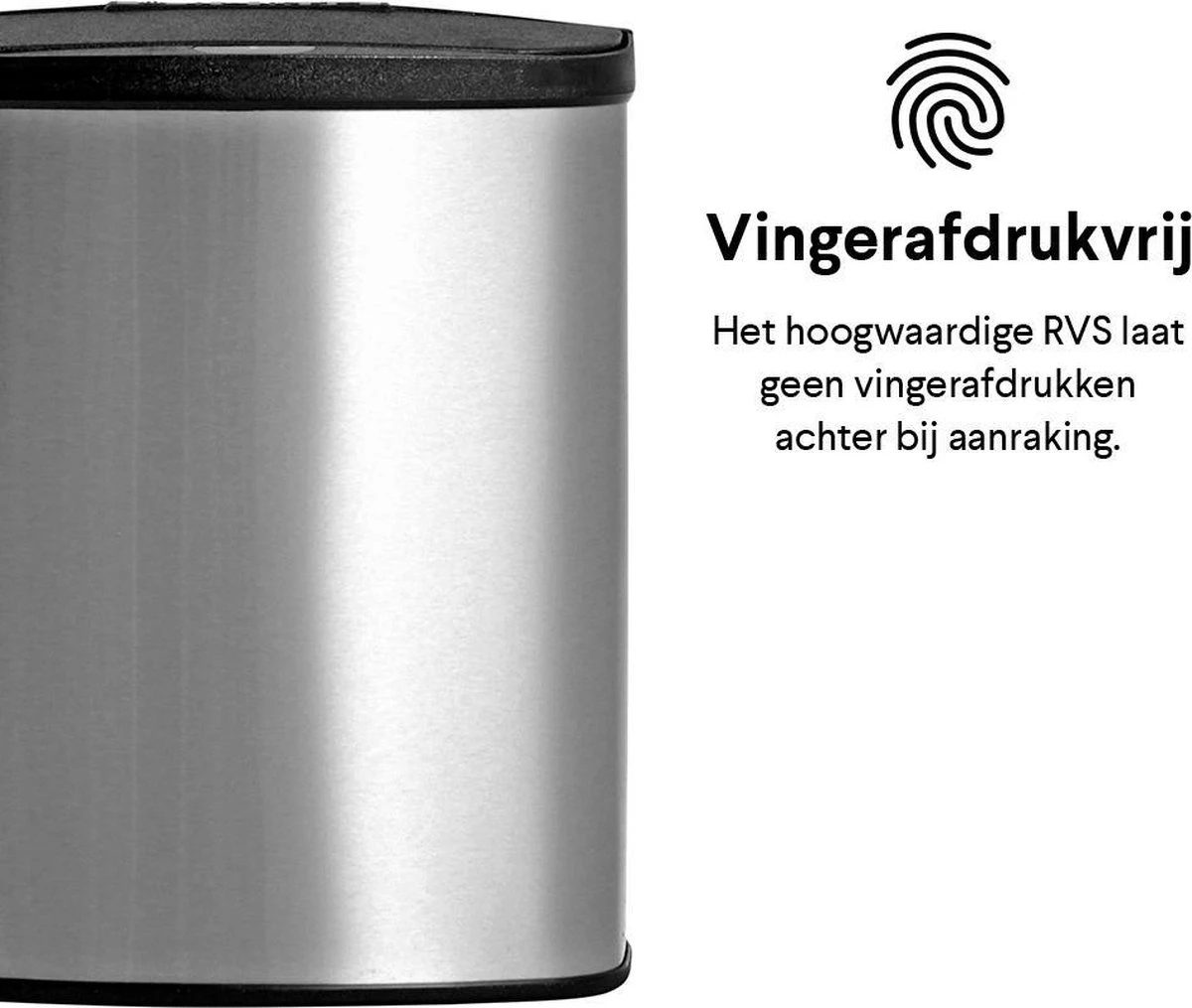 De sensor reageert op beweging op een afstand van 15 tot 20 cm waarbij het no-touch prullenbakdeksel direct open gaat. Nadat de sensor 5 seconden niets heeft gedetecteerd gaat het deksel ook automatisch weer dicht. Wilt u dat het deksel langer open blijft staan dan kunt u dit simpel regelen door op de ‘open’ knop te drukken; het deksel blijft dan net zo lang open staan totdat u op de ‘sluit’ knop drukt.