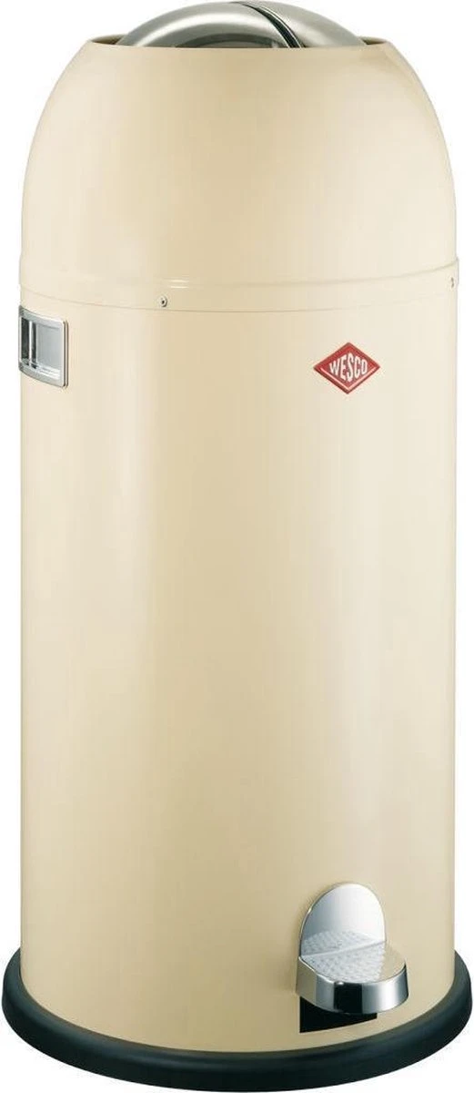 De Wesco Kickmaster Maxi 40 liter is niet alleen een moderne afvalemmer met een retro design en een echte blikvanger maar is bovendien de meest praktische prullenbak die er is. Een stevig voetpedaal opent en sluit de twee RVS deksel-schalen geruisloos over de ruime vulopening van deze prullenbak. Met de handgrepen tilt u makkelijk de buitenzijde van de Kickmaster Maxi over de binnenemmer. De Kickmaster Maxi is gemaakt van een hoge kwaliteit staal met roestvrijstalen deksel-kleppen. De stalen gegalvaniseerde binnenbak heeft een inhoud van 40 liter en biedt voldoende ruimte voor al uw restafval. Perfect voor elke gebruikssituatie! De Kickmaster Maxi prullenbak is verkrijgbaar in verschillende kleuren en past dus in elk huis, kantoor of andere plaats waar hij nodig is!