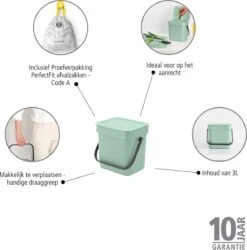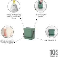 Deuba Prullen Vuilnisbak 50 L – Met Schuifdeksel – Mintgroen
