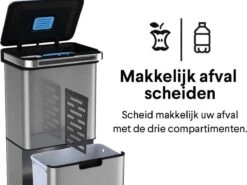 EKO Mirage Plus Sensor Afvalscheider Prullenbak – 30 + 15 + 15 L – Mat RVS