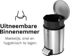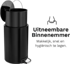 Oneiro’s Klassieke Pedaalemmer BAS PRO Zwart – 16 X 16 X H27 – 3L – Metaal – Toilet – Badkamer
