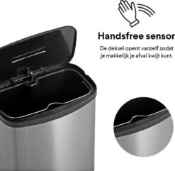 Kitchenmove Prullenbak 68 Liter Met Sensor. Hoogglans Chroom – Automatische Klep Open.