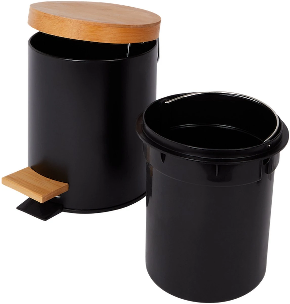| Verpakkingsinhoud | Premium Pedaalemmer Bamboe – Soft Close – Zwart – 3 Liter |