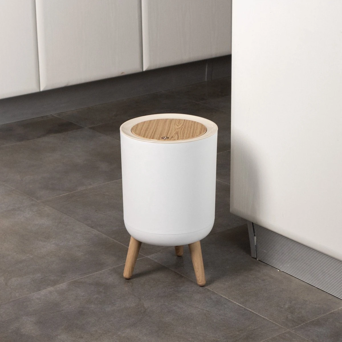 Raak toiletvoetcontainer aan. Capaciteit 7L. MALMO-model. Hout kleur. Afmeting product: 22 x 22 x 36,3 cm. Raak bak aan. Openen door eenvoudige druk. Duw bak. Zeer gemakkelijk te gebruiken. Geluiddichte en geurwerende sluiting. Makkelijk te verplaatsen en schoon te maken. Praktisch en hygiënisch. De gladde materialen maken het gemakkelijk te onderhouden. De ronde vorm van de container geeft hem een ​​hoge stabiliteit. Ideaal voor toilet, badkamer, keuken, slaapkamer, kantoor, wasplaats… Of het nu gaat om een ​​toiletbak, voor papier op kantoor of in de keuken voor klein huishoudelijk afval – deze bak laat elke kamer er frisser uitzien dankzij zijn moderne en elegante vormgeving. Scandinavische stijl. Schoon en modern ontwerp. Een elegante container met een modern en elegant design.