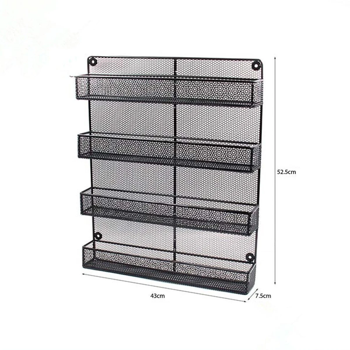 Het ijzeren rek zit stevig in mekaar en is simplistisch modern. Zo gaat alle aandacht naar jouw kruidenassortiment. Waar je het rek ook bevestigd, het neemt slechts 43 x 7.5 x 52.5cm aan ruimte in beslag.
