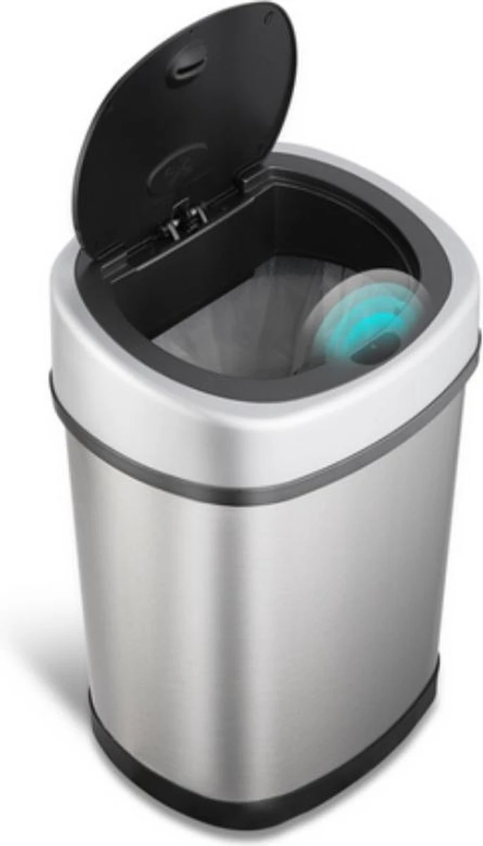 vuilniszakken in vervangt, beschikt deze prullenbak over een erg handig en licht ophangsysteem waar u uw vuilniszak eenvoudig in hangt. De prullenbak heeft een inhoud van 12 liter en is van roestvrij staal. Zeer eenvoudig te onderhouden en te reinigen. Deze afvalbak met sensor is volledig automatisch en op de toekomst gericht. Ga mee met de tijd en schaf hem nu aan!