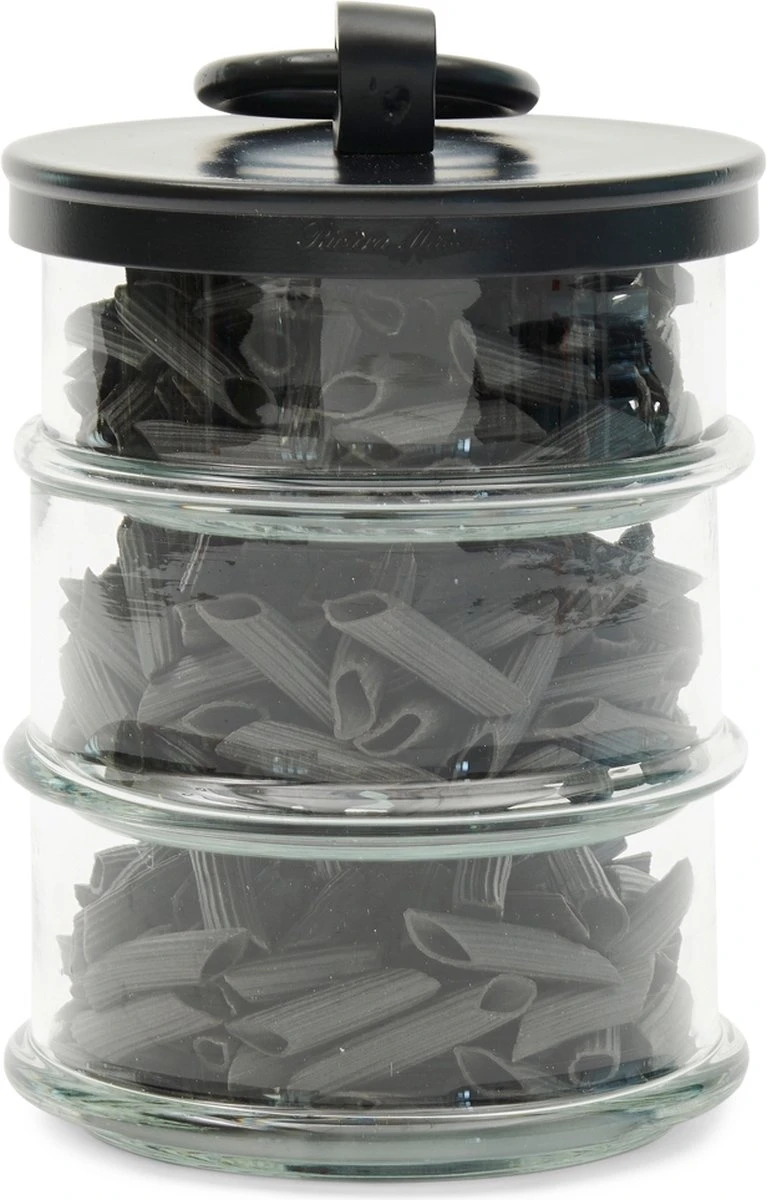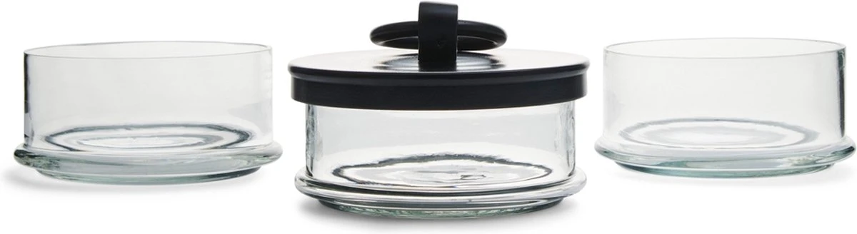 De ‘Cordoba’ voorraadpot is een handige opberger met drie glazen compartimenten. Zo kun je veel kwijt en zien wat je opbergt, zonder dat het teveel ruimte kost. De pot is gemaakt van mondgeblazen glas met een deksel van zwart aluminium, wat voor een strakke touch zorgt. Verkrijgbaar in verschillende uitvoeringen en maten.