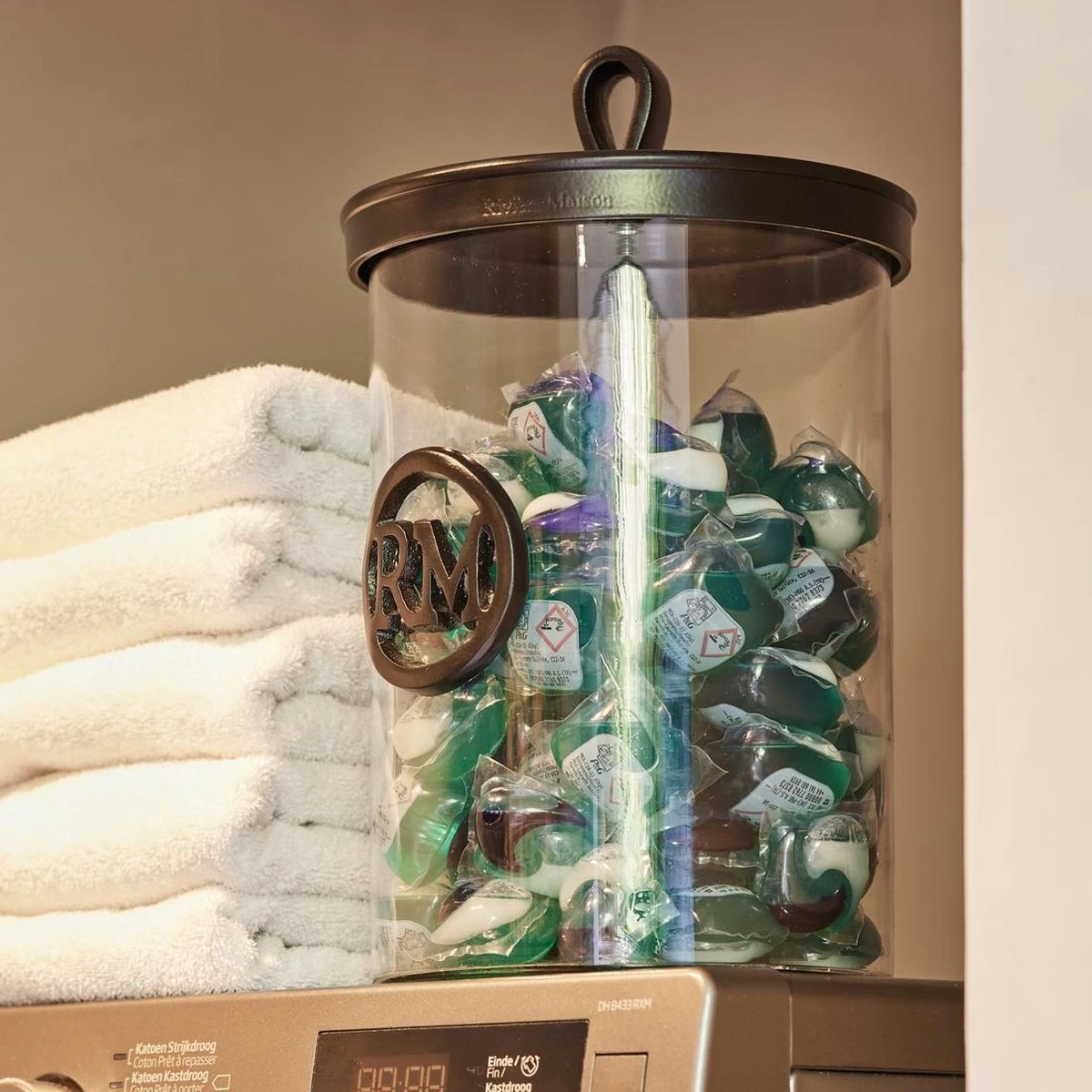 De RM Soho Storage Jar is een voorraadpot met een stoere twist. Want de pot is gemaakt van mondgeblazen glas en afgewerkt met zwarte details, zoals de aluminium deksel en de letters op de pot. Verkrijgbaar in verschillende maten.