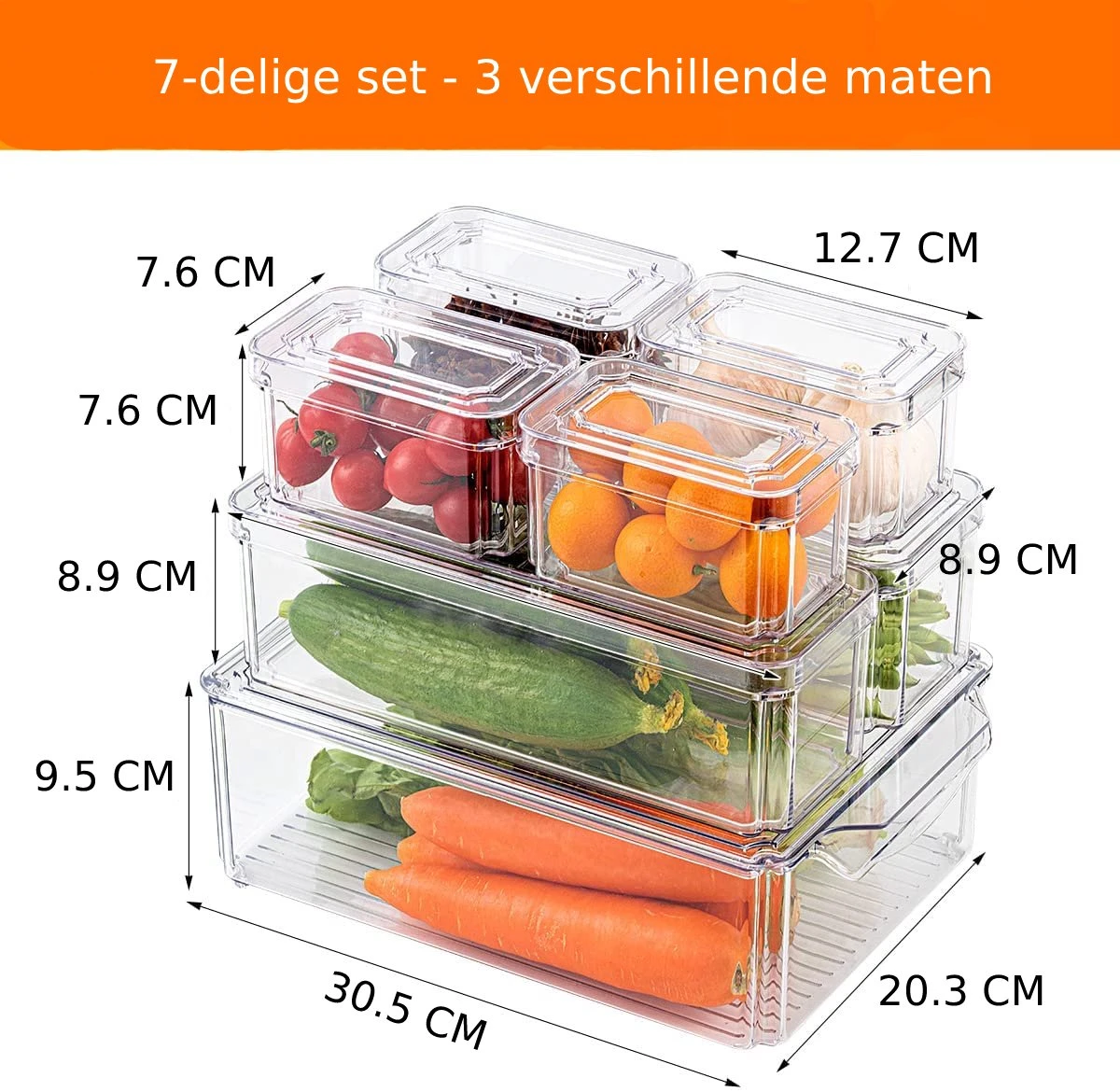 - 【Voedselopslagcontainers】 De set bevat 1 grote 2 middelgrote 4 kleine koelkastorganizer die gemakkelijk een groot aantal items kan bevatten. Houd je koelkast netjes door containers van verschillende grootte te kiezen voor verschillende ingrediënten.