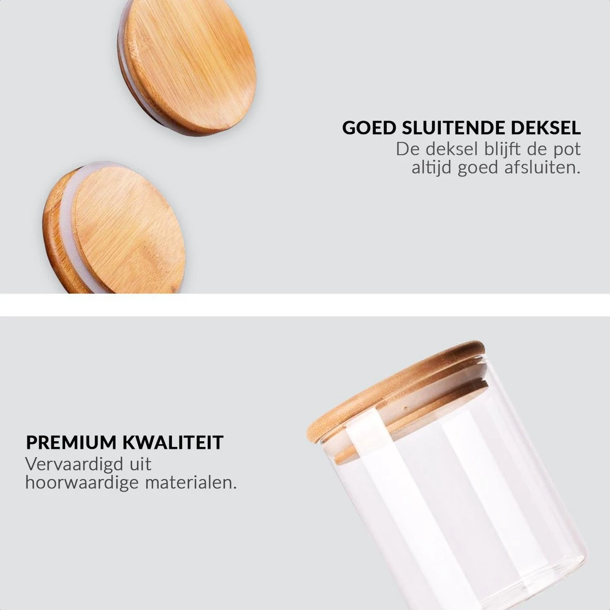 Als er iets vervelend is, is het die nare geuren die altijd uit bakjes en zakjes ontsnappen en overal in gaan zitten. Met deze super goed geïsoleerde voorraad potten kan je gedag zeggen tegen alle nare geuren van de producten die je erin bewaard. Deze potten hebben door de handige bamboedeksels en elastische kraag een super goed isolerend vermogen waardoor je nooit lsat zult hebben van nare luchtjes.