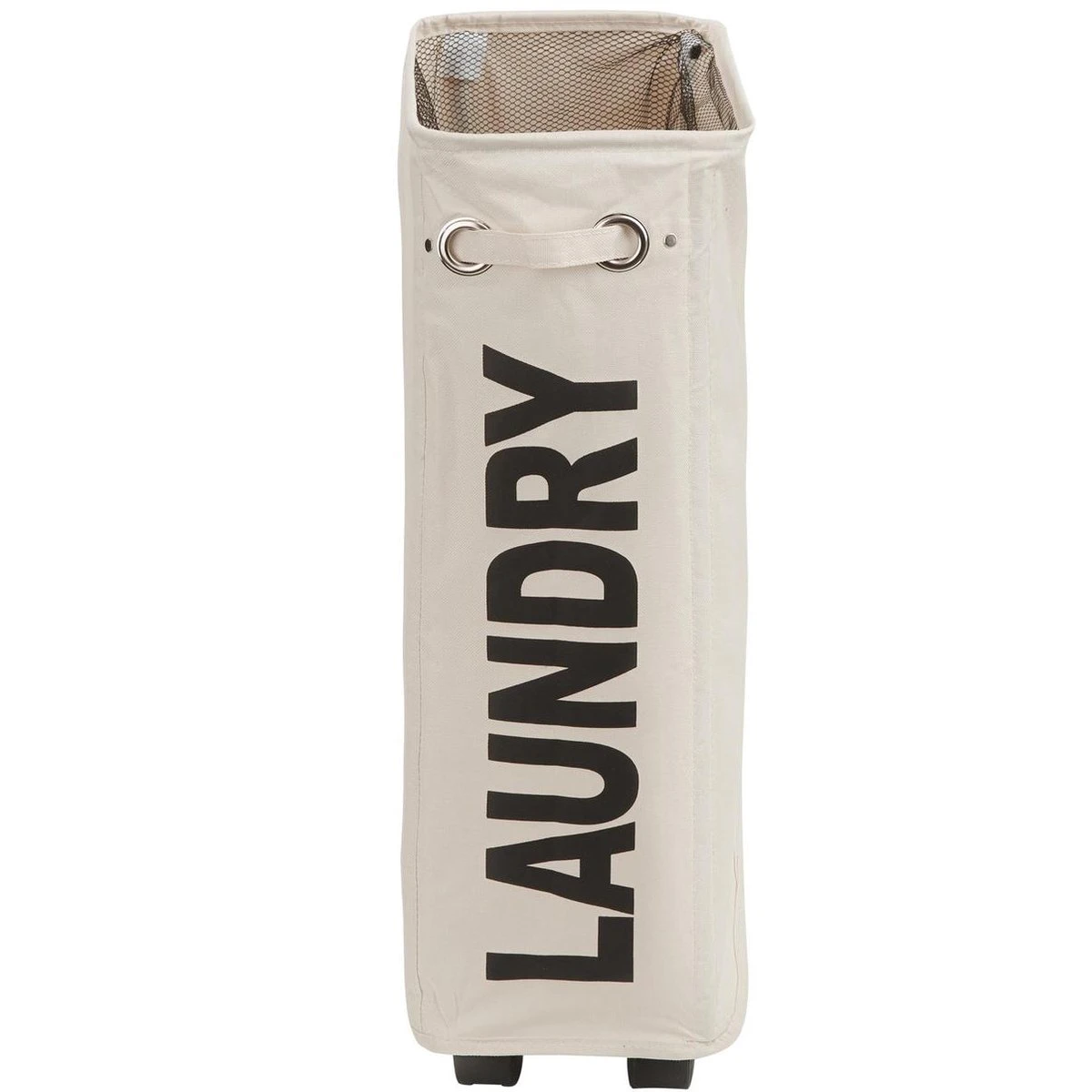 Deze compacte wasmand legt moderne accenten in uw badkamer. Het mooi gevormde design met de trendy tekst opwaardeert elke ruimte. Met haar smalle vorm kan ze ook in een kleine ruimte perfect gebruikt worden. Via de handgreep aan de voorzijde kan de lichtlopende mand met zijn vier wielen moeiteloos gesleept worden. Als ze niet gebruikt wordt, kan de korf tot een handig formaat samengeplooid worden. Tover ongebruikte niches en hoeken om tot een praktische opbergruimte met de stabiele wasmand van TecTake.