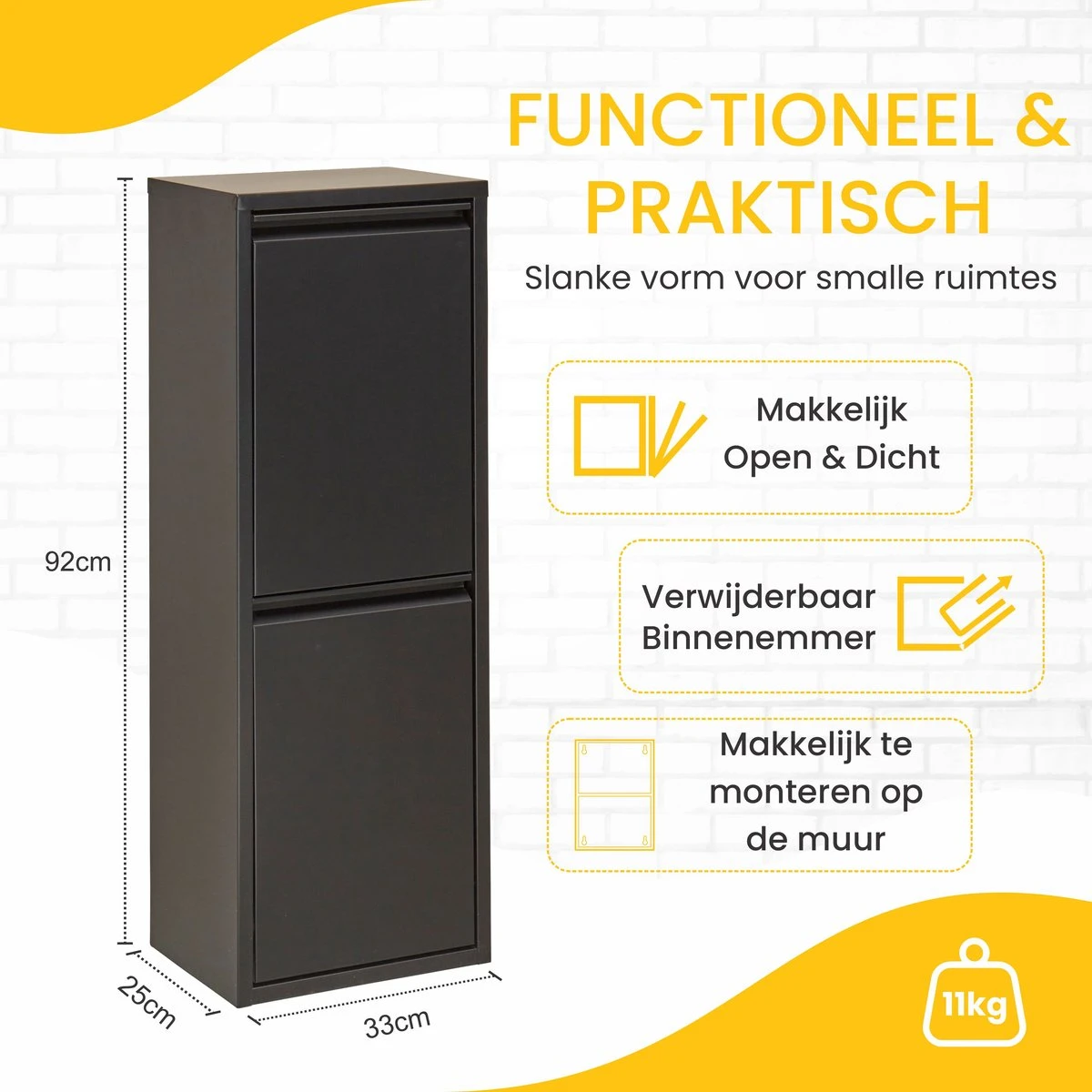 - Veelzijdig: de veelzijdige multifunctionele kast Refina van metaal is een ideale afvalscheider. Maar niet alleen als afvalscheidingssysteem is hij de perfecte aanvulling voor elk huishouden, maar ook als opbergsysteem slaat hij een goed figuur. Dankzij de hoogwaardige afwerking en look is hij geschikt voor bijna alle ruimtes.